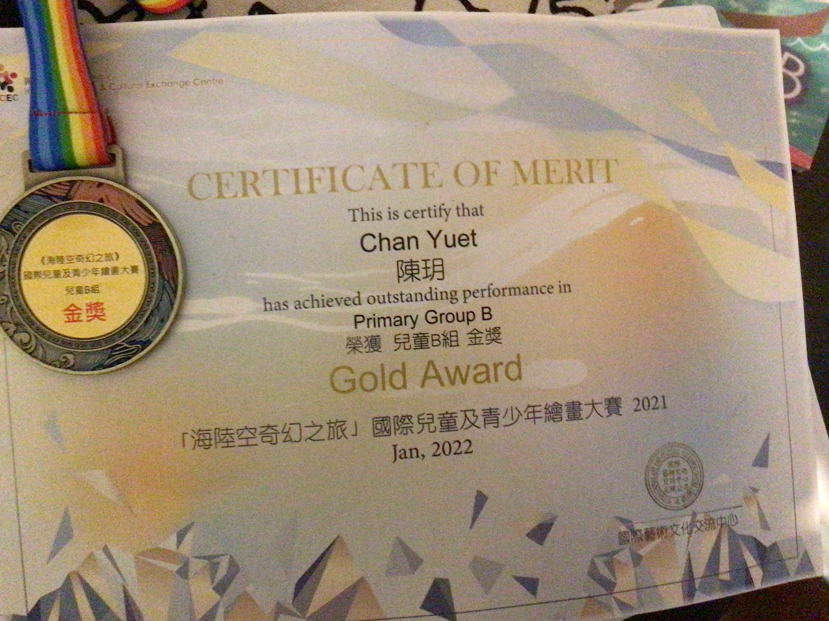 5B_陳玥_「海陸空奇幻之旅」國際兒童及青年繪畫大賽_兒童B組_金獎
