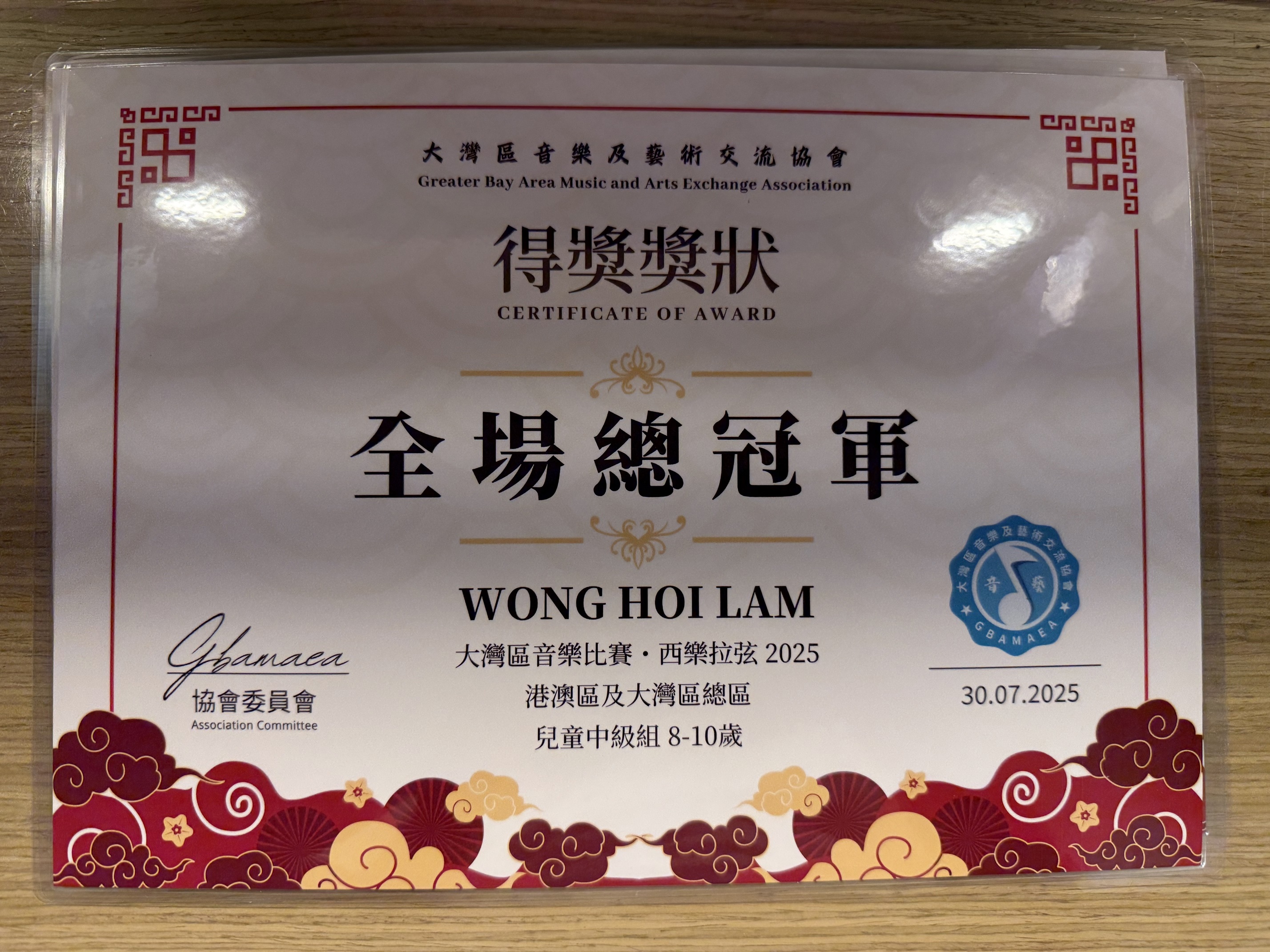 4D_王暟琳_2025大灣區音樂比賽· 西樂拉弦_兒童中級組8-10 歲_全場總冠軍(港澳區及大灣區總區)