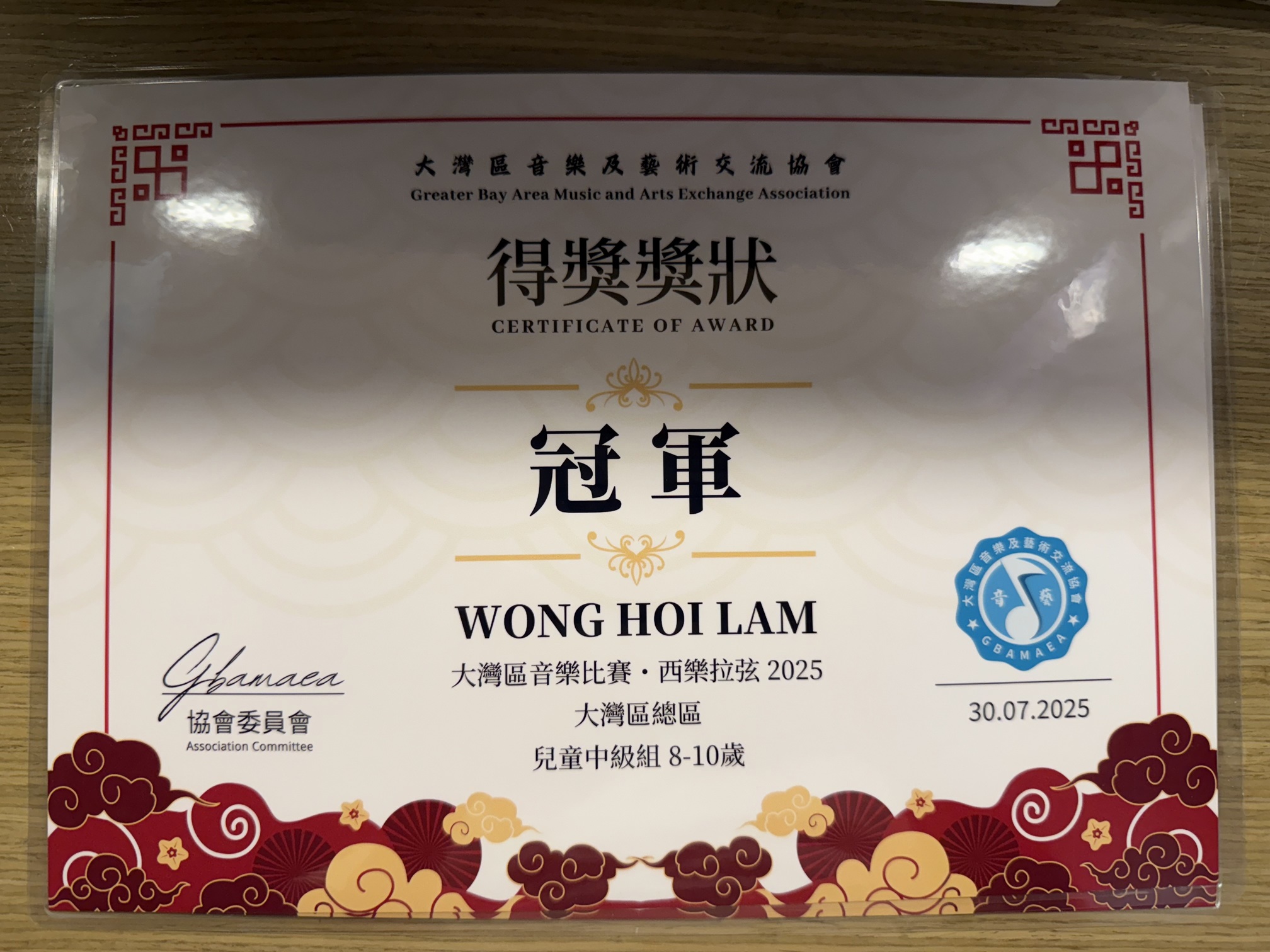 4D_王暟琳_2025 大灣區音樂比賽· 西樂拉弦_兒童中級組8-10 歲_冠軍(大灣區總區)