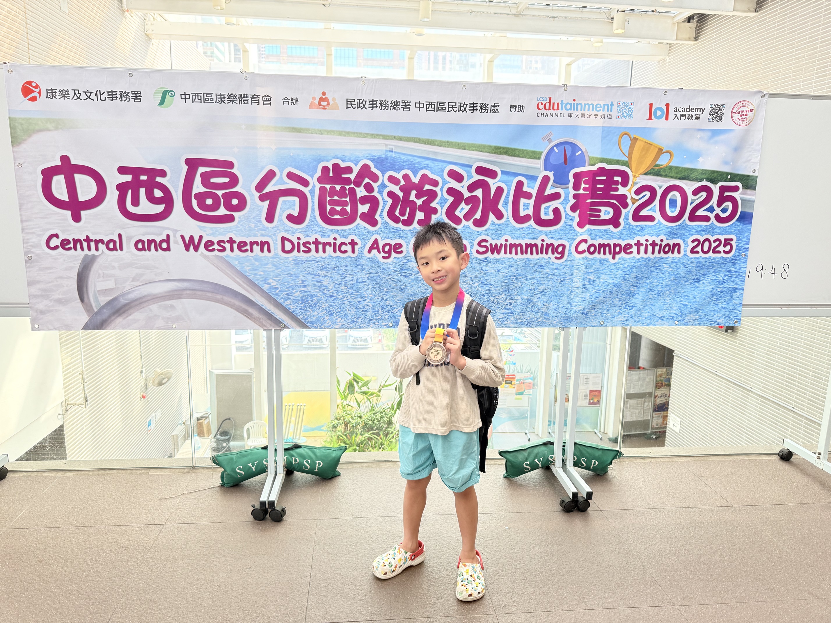 1C_黎希洛_中西區分齡游泳比賽2025_青少年J組8歲或以下組別50米背泳_季軍