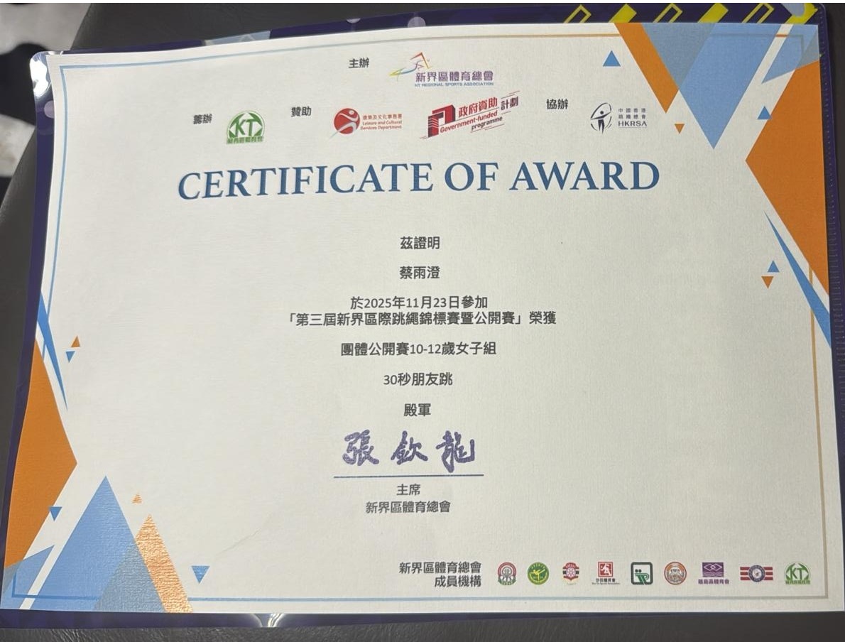 6A_蔡雨澄_第三屆新界區際跳繩錦標公開賽_團體組10-12歲女子組30秒朋友跳_殿軍