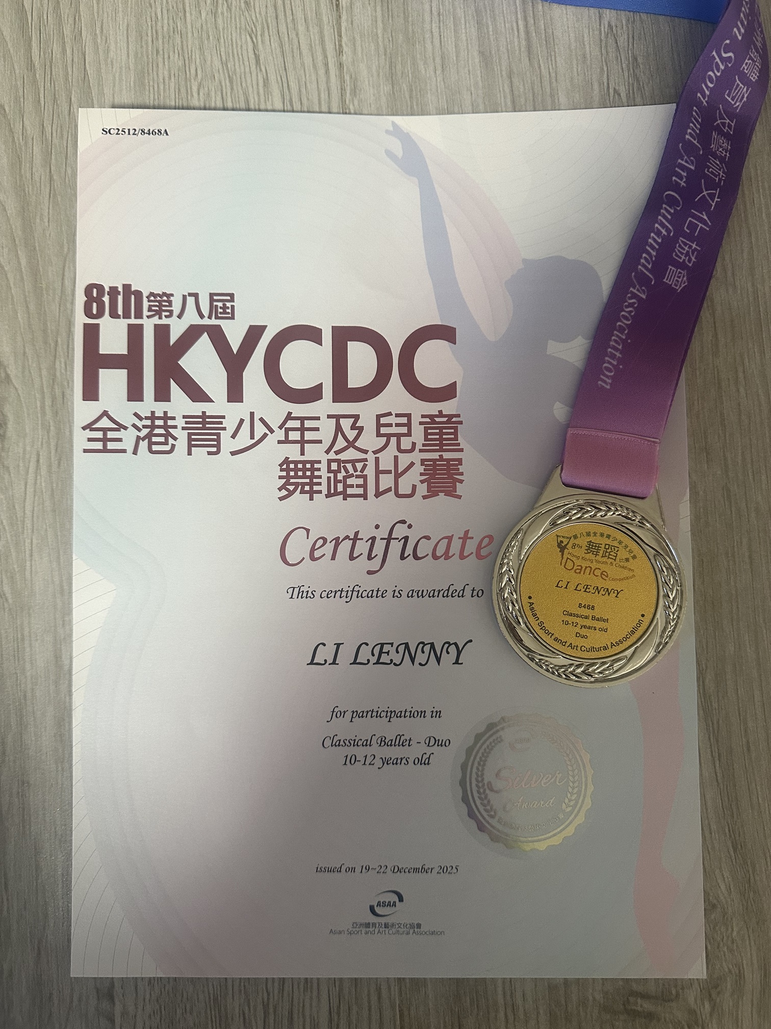 6B_李宛霖_第八屆全港青少年及兒童舞蹈比賽_古典芭蕾舞-雙人舞10-12歲組_銀獎