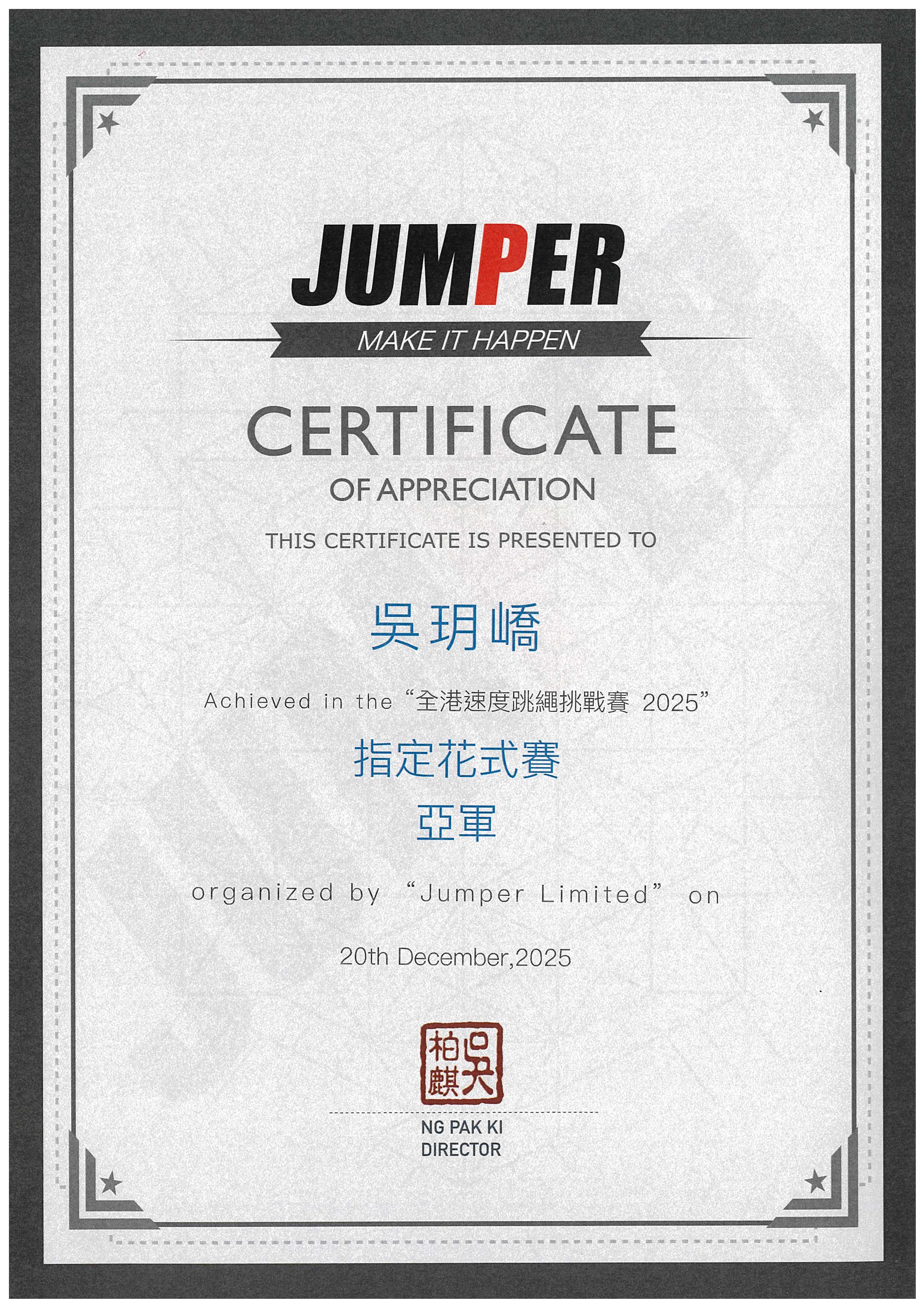 1D_吳玥嶠_全港速度跳繩挑戰賽2025_6歲或以下女子組 指定花式賽_亞軍