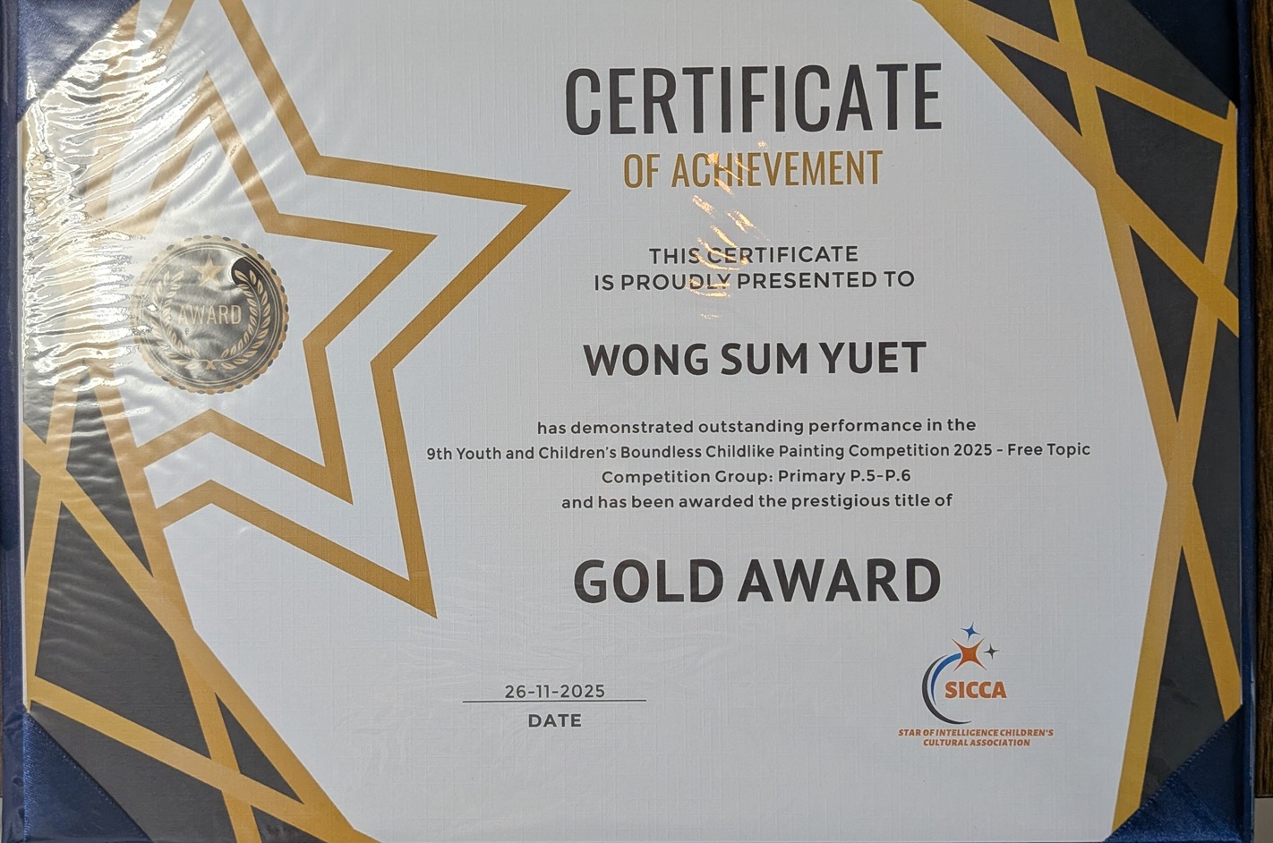 5A_黃芯玥_第九屆香港青少年及兒童童真無限藝術大賽 2025 繪畫組 (自選主題)_P.5-P.6組 _金獎