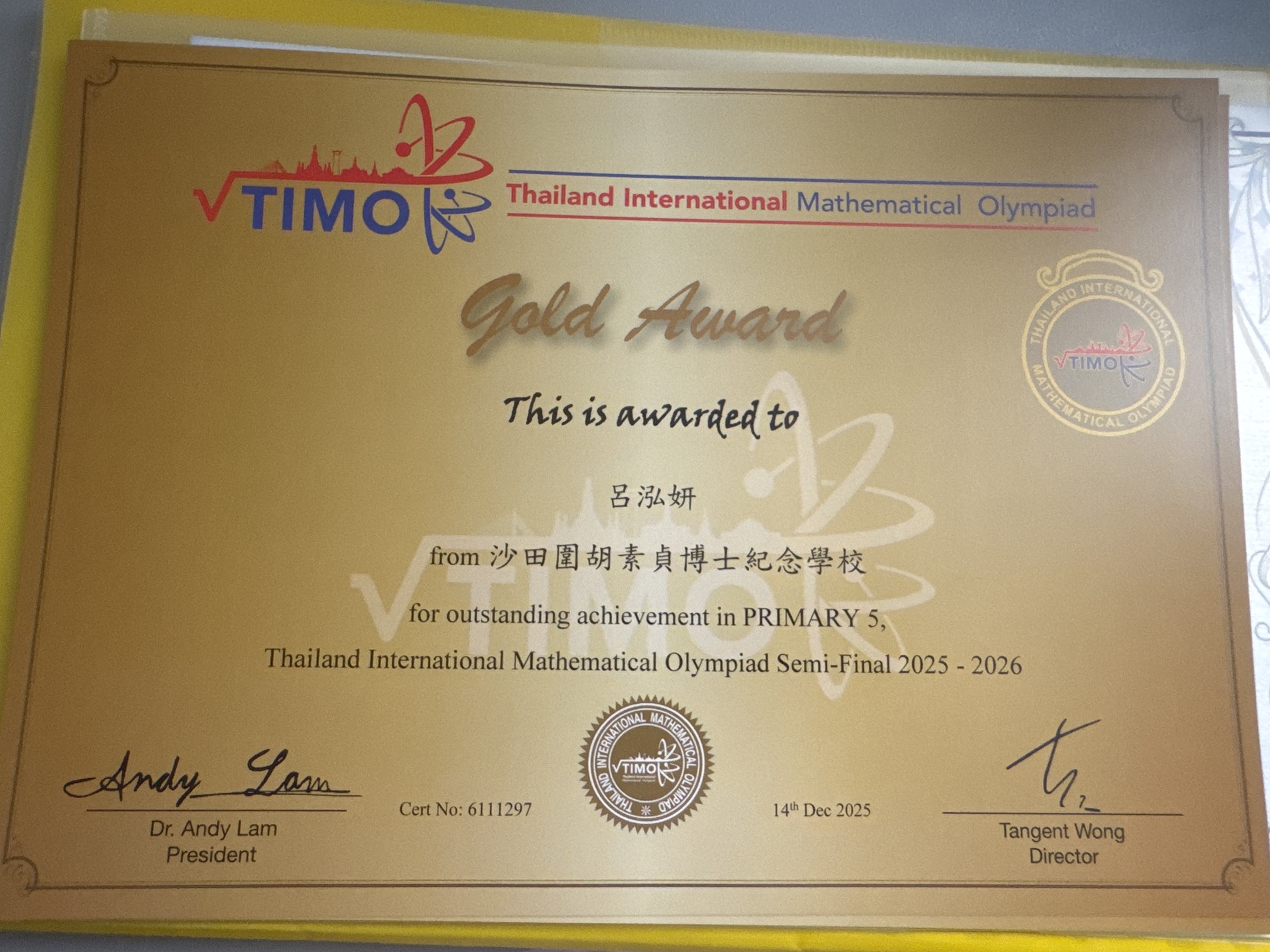 5D_呂泓妍_TIMO泰國國際數學競賽晉級賽_5年級組_金獎