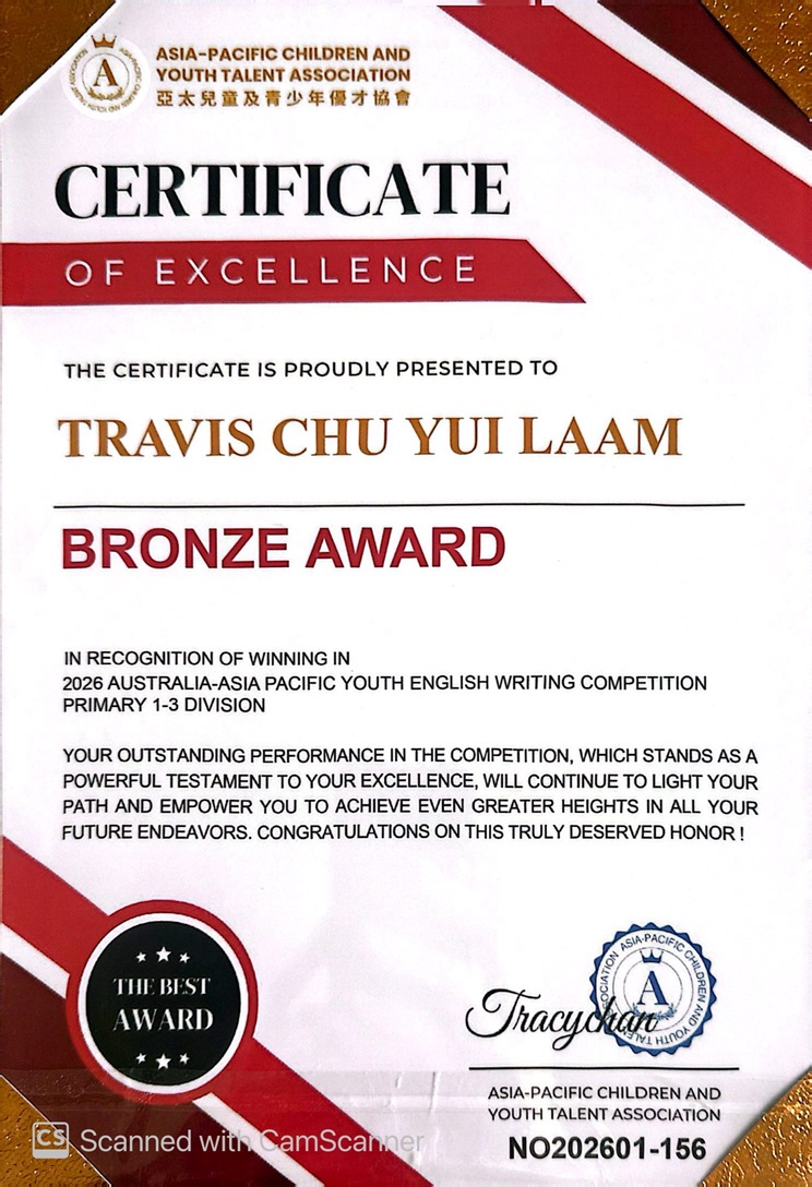 1C_朱睿嵐_2026 澳亞⻘少年英⽂寫作⼤賽_幼兒組:6 歲或以下_銅獎