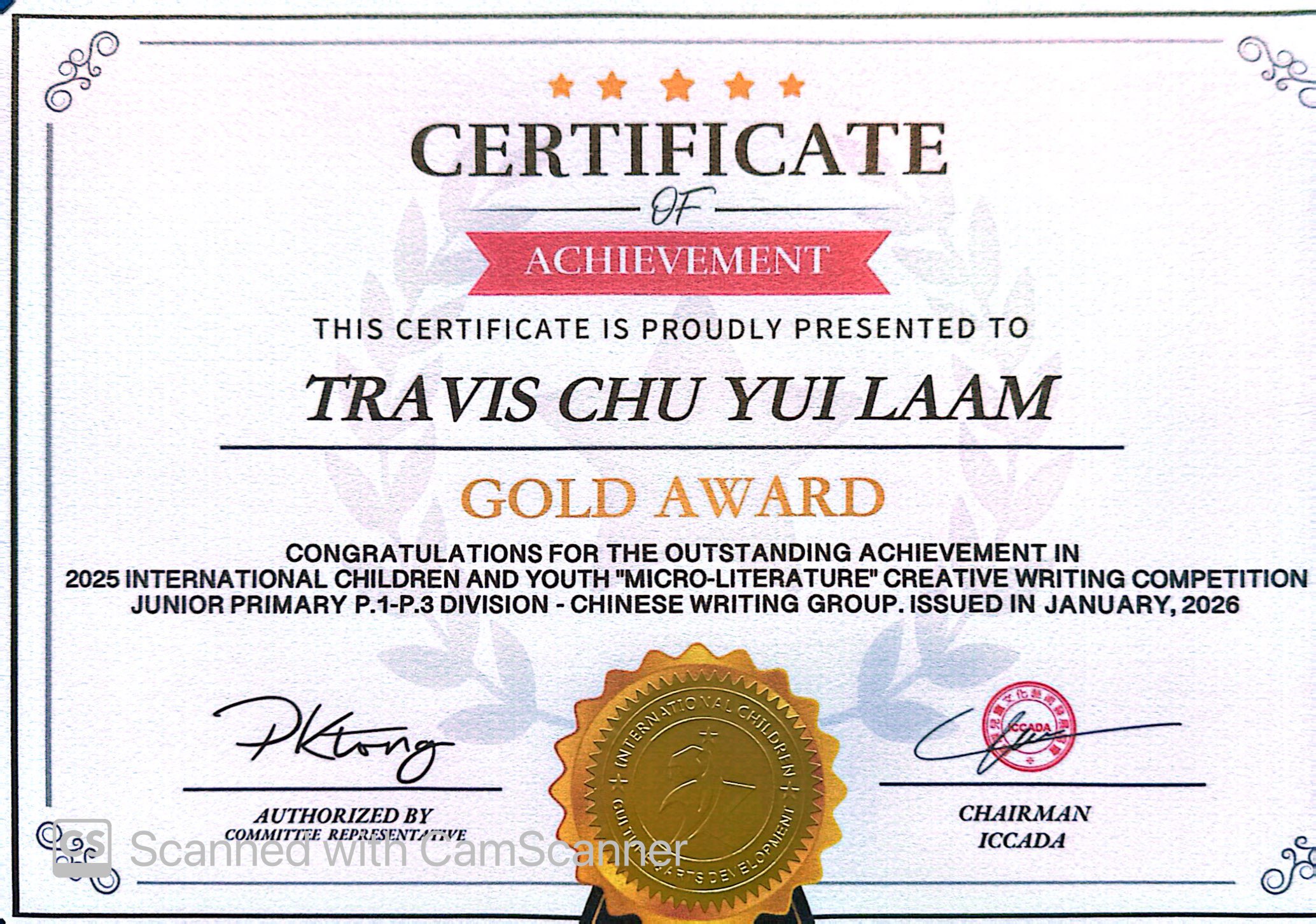 1C_朱睿嵐_2025國際微⽂學創意寫作⼤賽_初小組_金獎