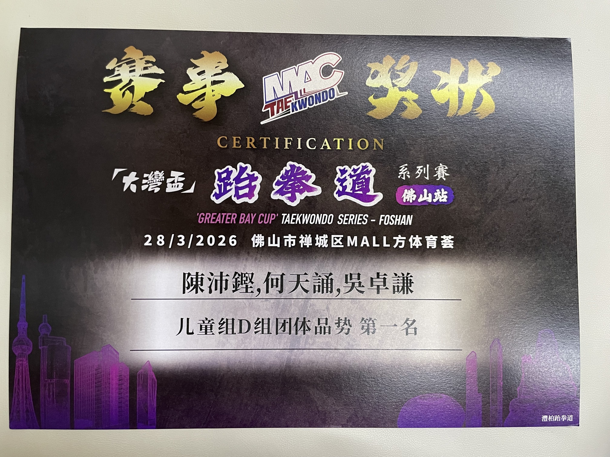 1C_吳卓謙_2026跆「大灣盃」跆拳道系列賽_兒童組D組團體品勢_第一名