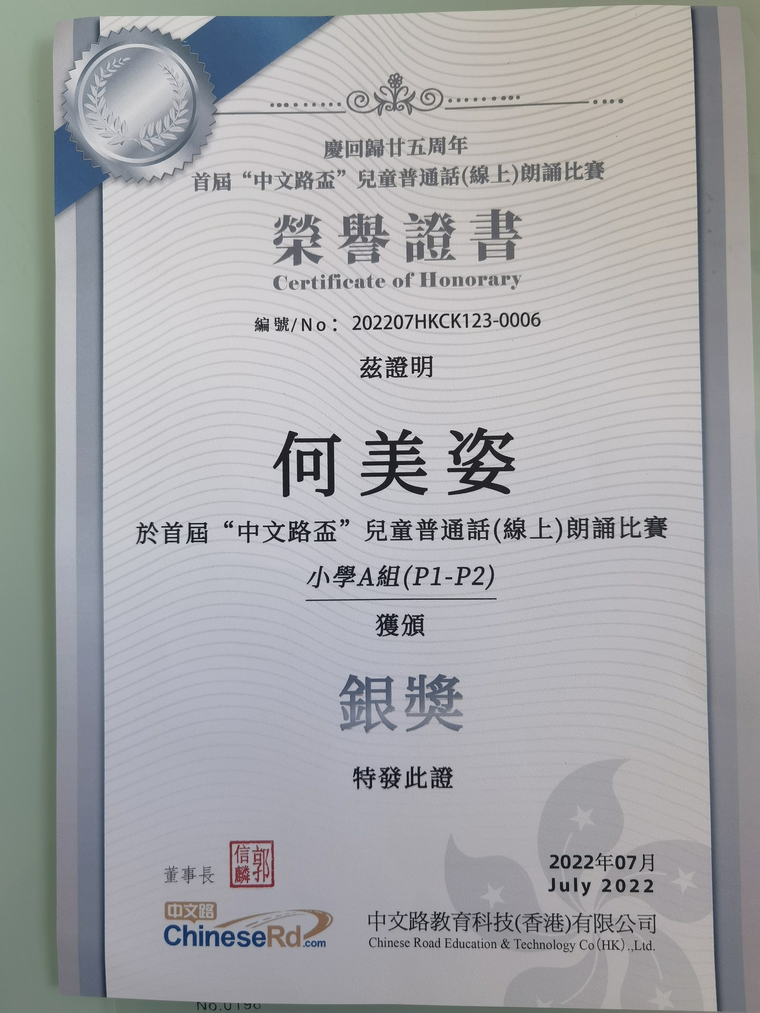 1A_何美姿_中文路盃兒童普通話線上朗誦比賽_小學A組 P1-P2_銀獎