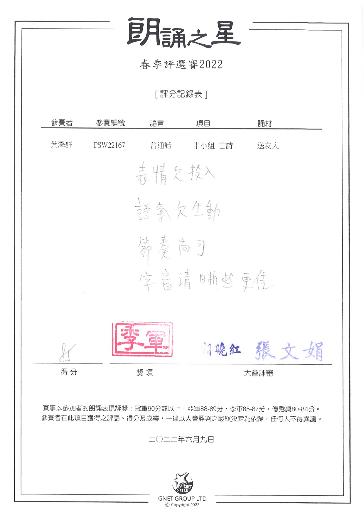 3D_葉澤群_朗誦之星春季評選賽_中小組古詩_季軍