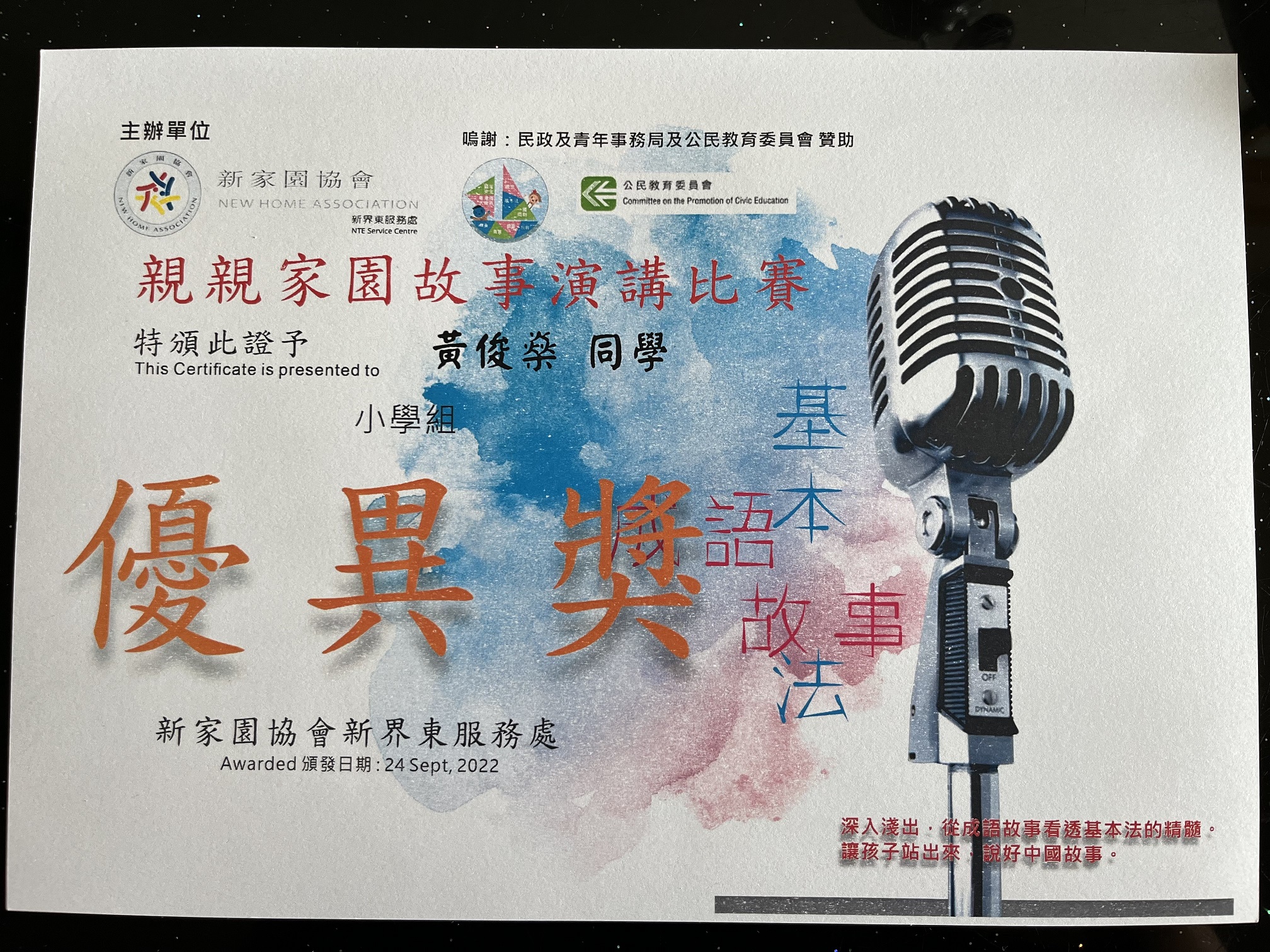 4D_黃俊燊_親親家園成語故事演講比賽_小學組_優異獎