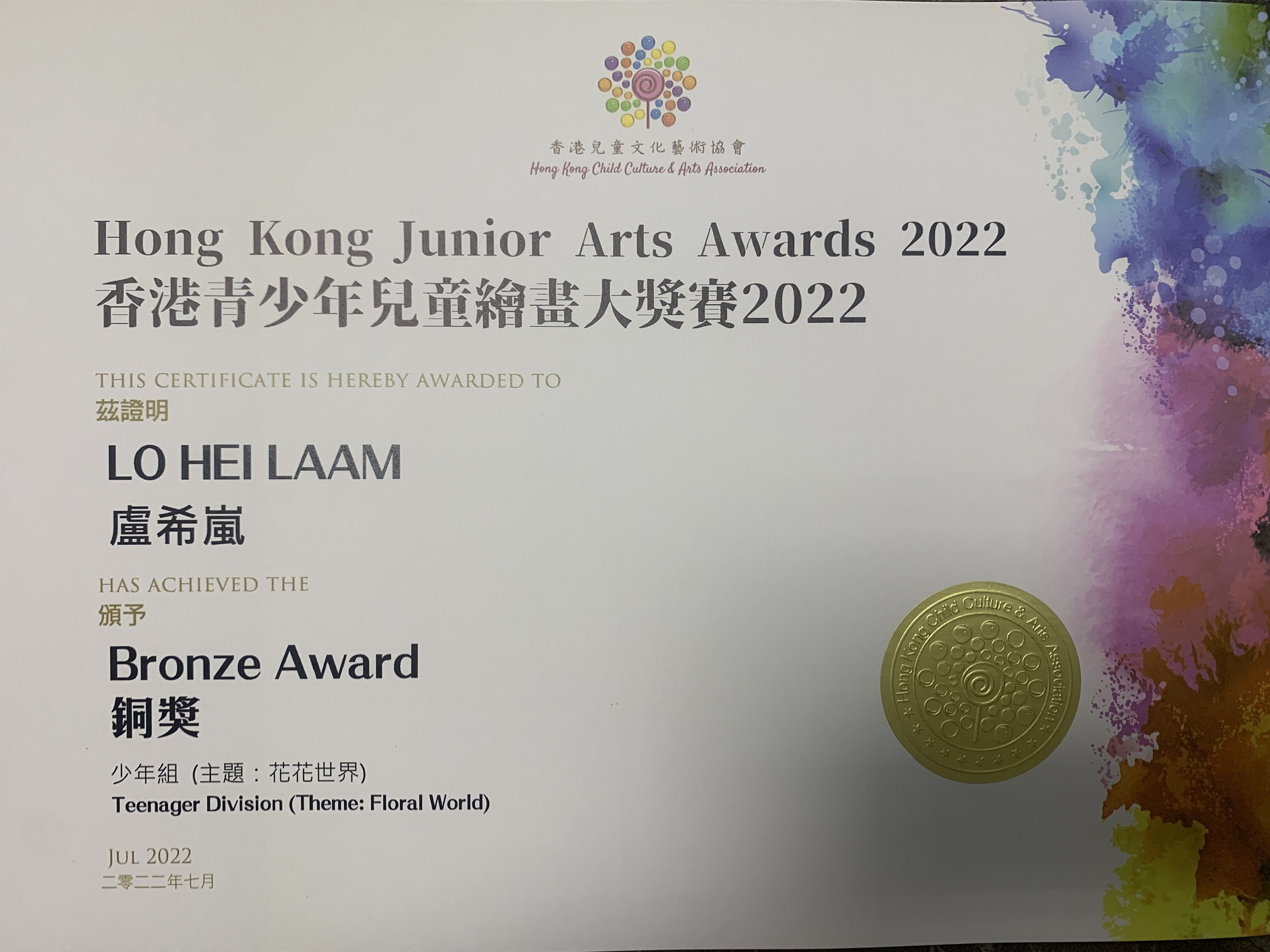 6C_盧希嵐_香港青少年兒童繪畫大賽2002-花花世界_少年組_銅獎