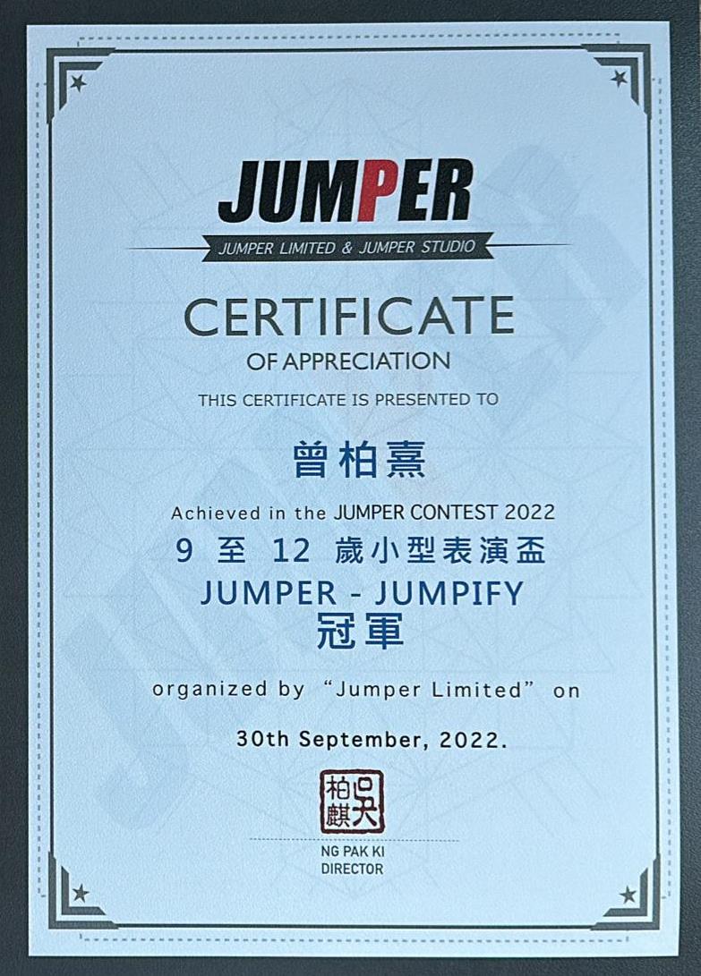 5B_曾柏熹_繩舞館JUMPER CONTEST 2022_9至12歲小型表演盃_冠軍