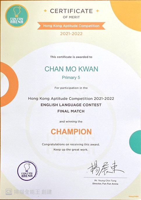 6C_陳武均_香港學科比賽英文科_小學五年級_冠軍