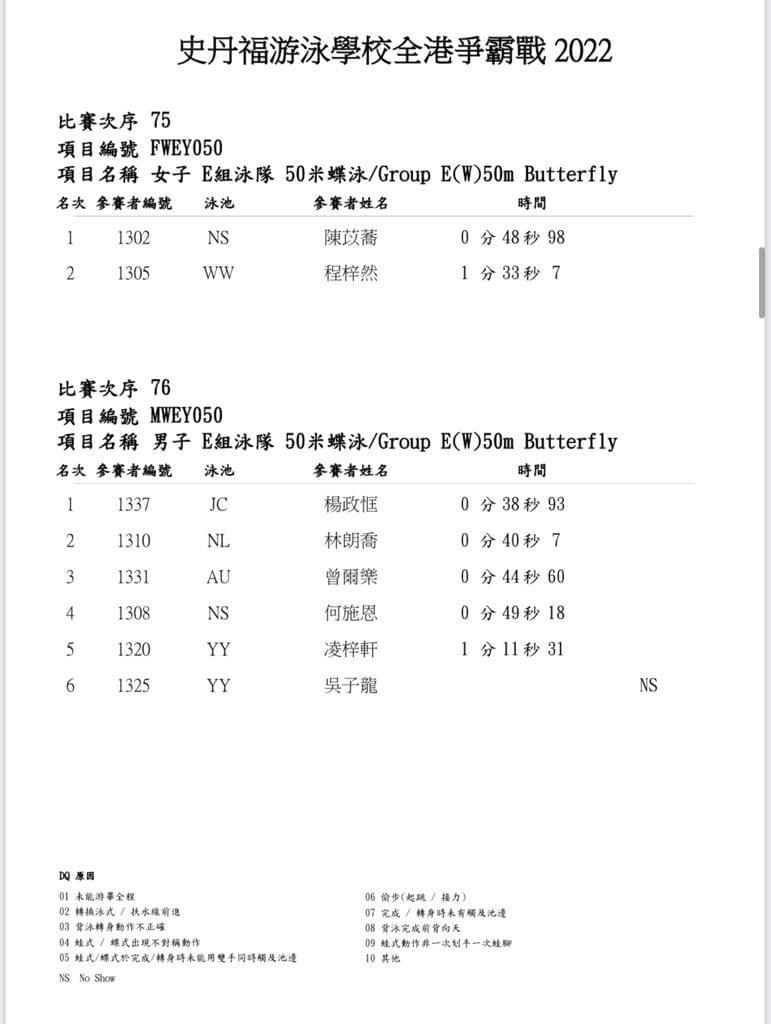 4A_林朗喬_史丹福游泳學校全港爭霸戰2022_男子E組50米蝶泳_亞軍