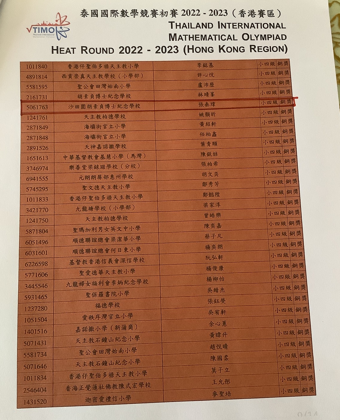 4A_張秦瑋_泰國國際數學競賽初賽_四年級_銅奬
