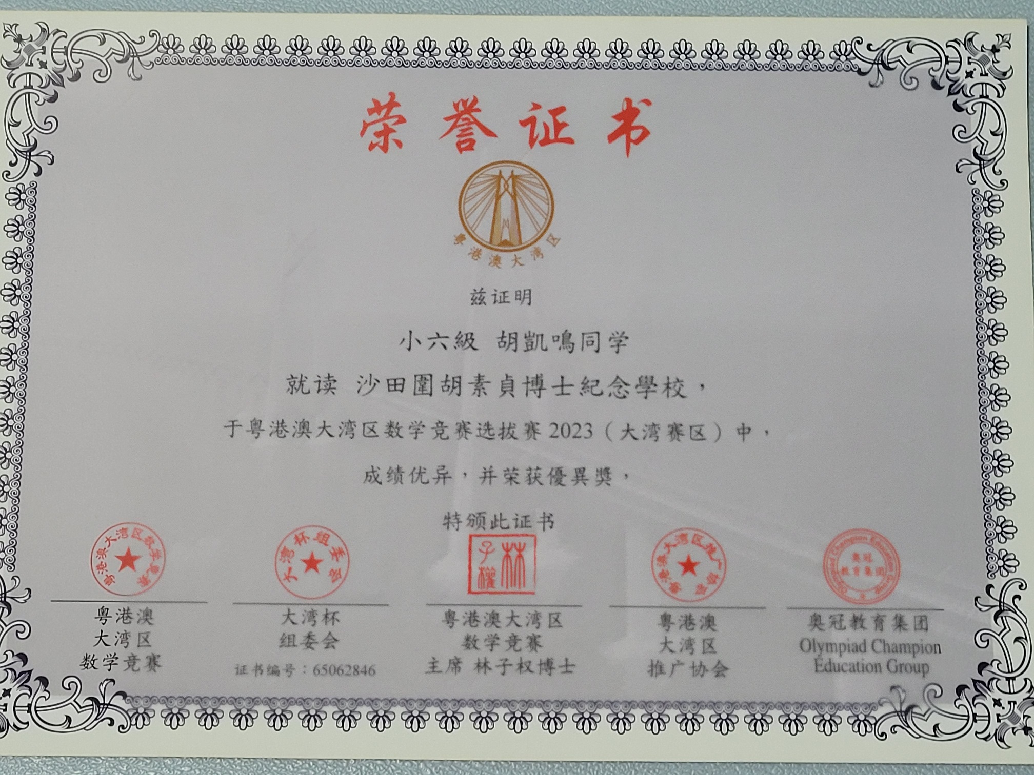 6B_胡凱鳴_粵港澳大灣區數學競賽選拔賽2023(大灣區)_小六級_優異獎
