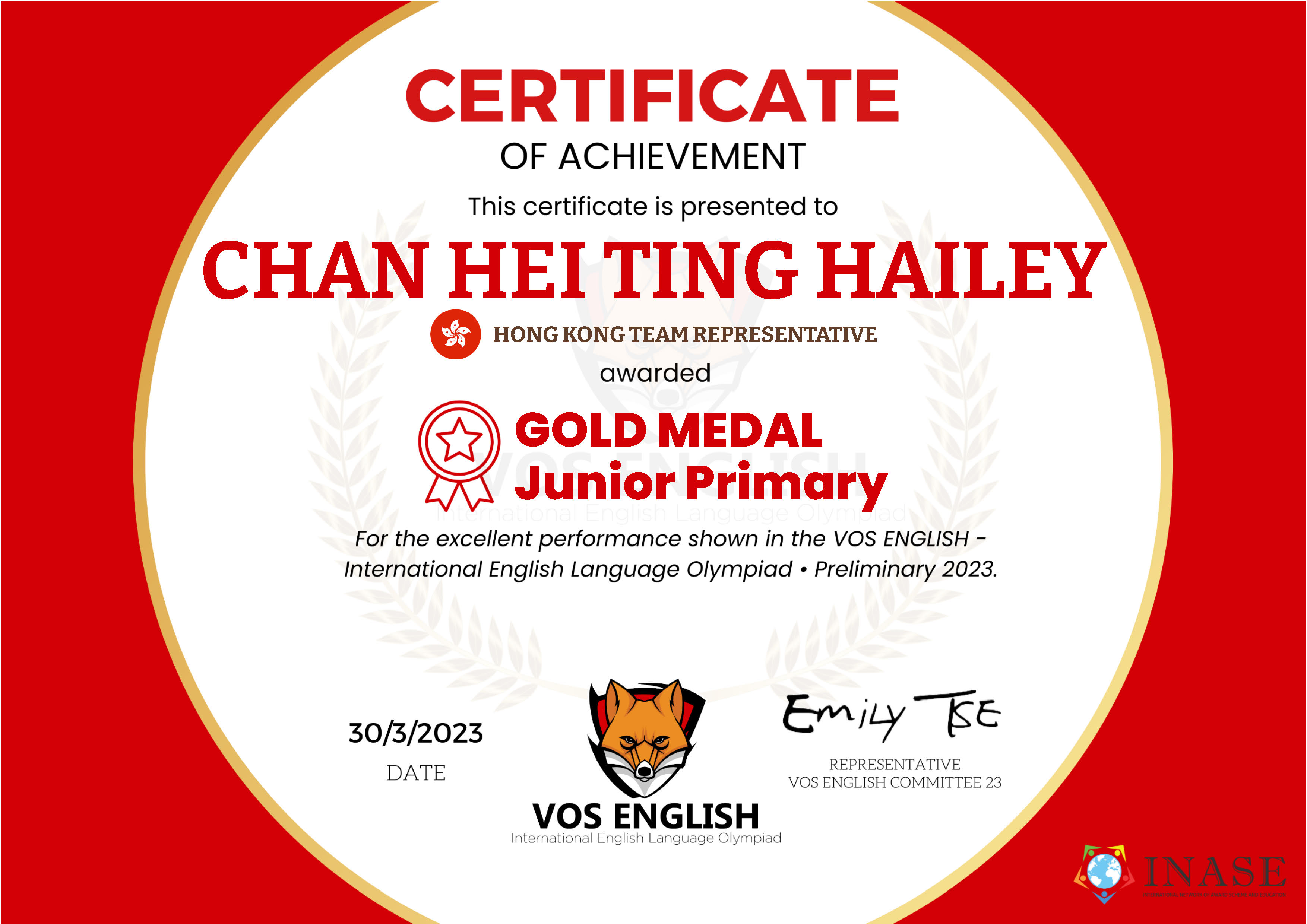 2D_陳熙廷_Vos English - International English Language Olympiad 2023_Junior Primary_Gold Medal