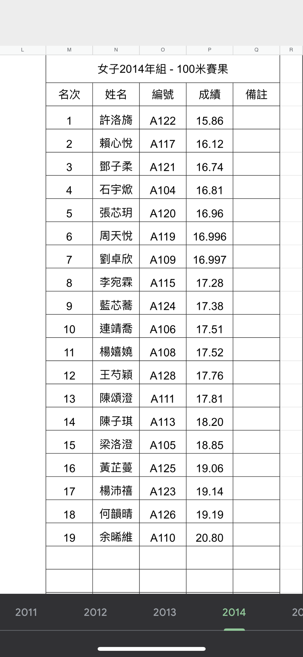 3D_李宛霖_沙田復活節田徑大獎賽2023_2014年女子組100米_第八名