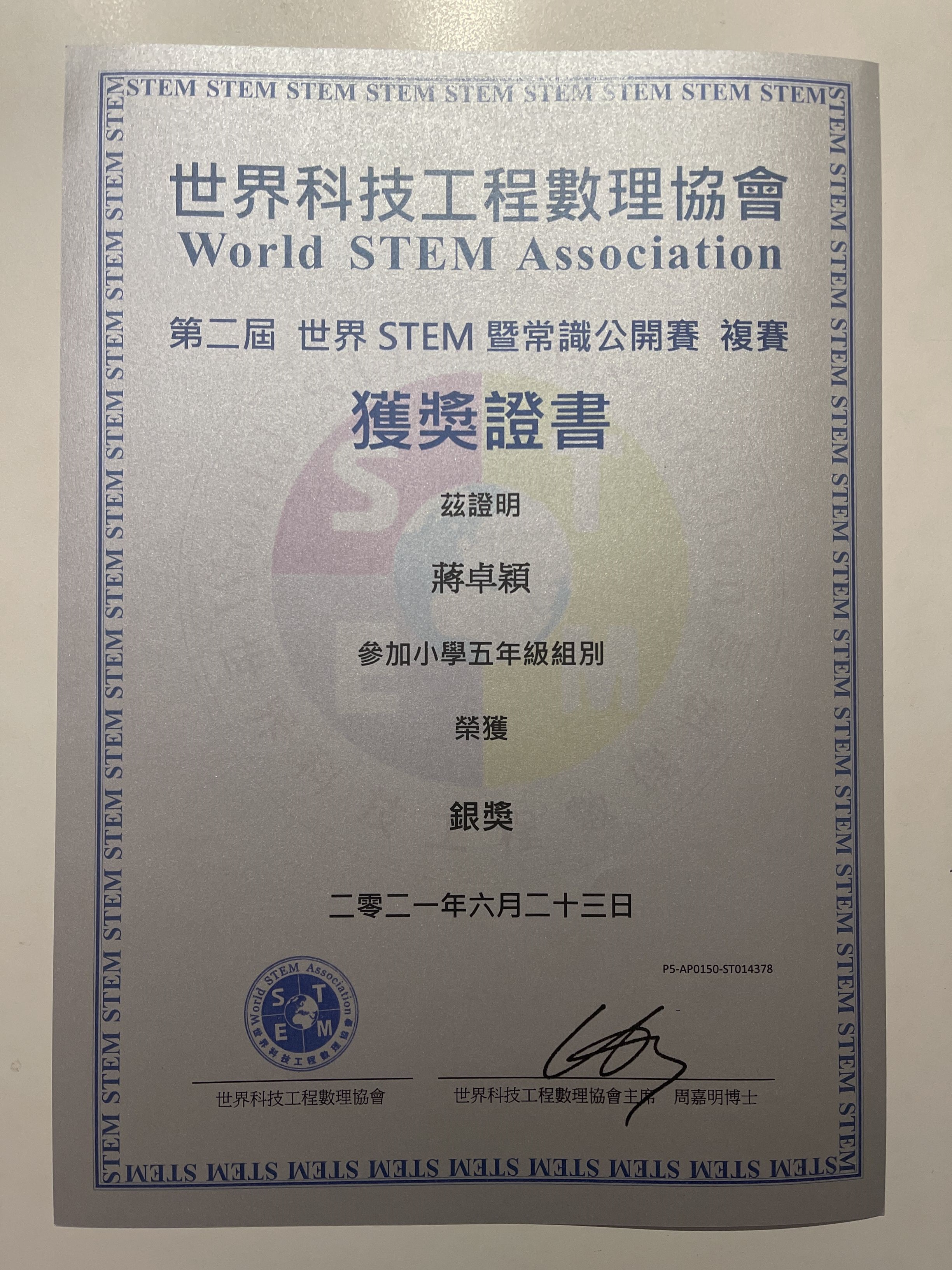 6C _蔣卓穎_ 第二屆 世界STEM暨常識公開賽 複賽_ 小學五年級_ 銀獎