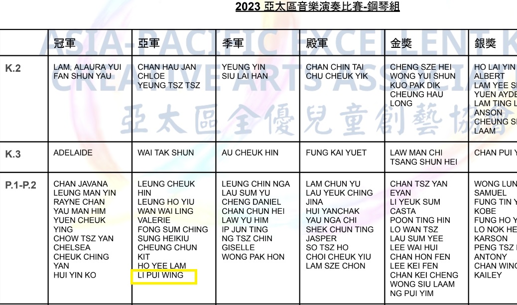 2B_李沛穎_亞太區全優兒童創藝協會_P.1-2鋼琴組_亞軍