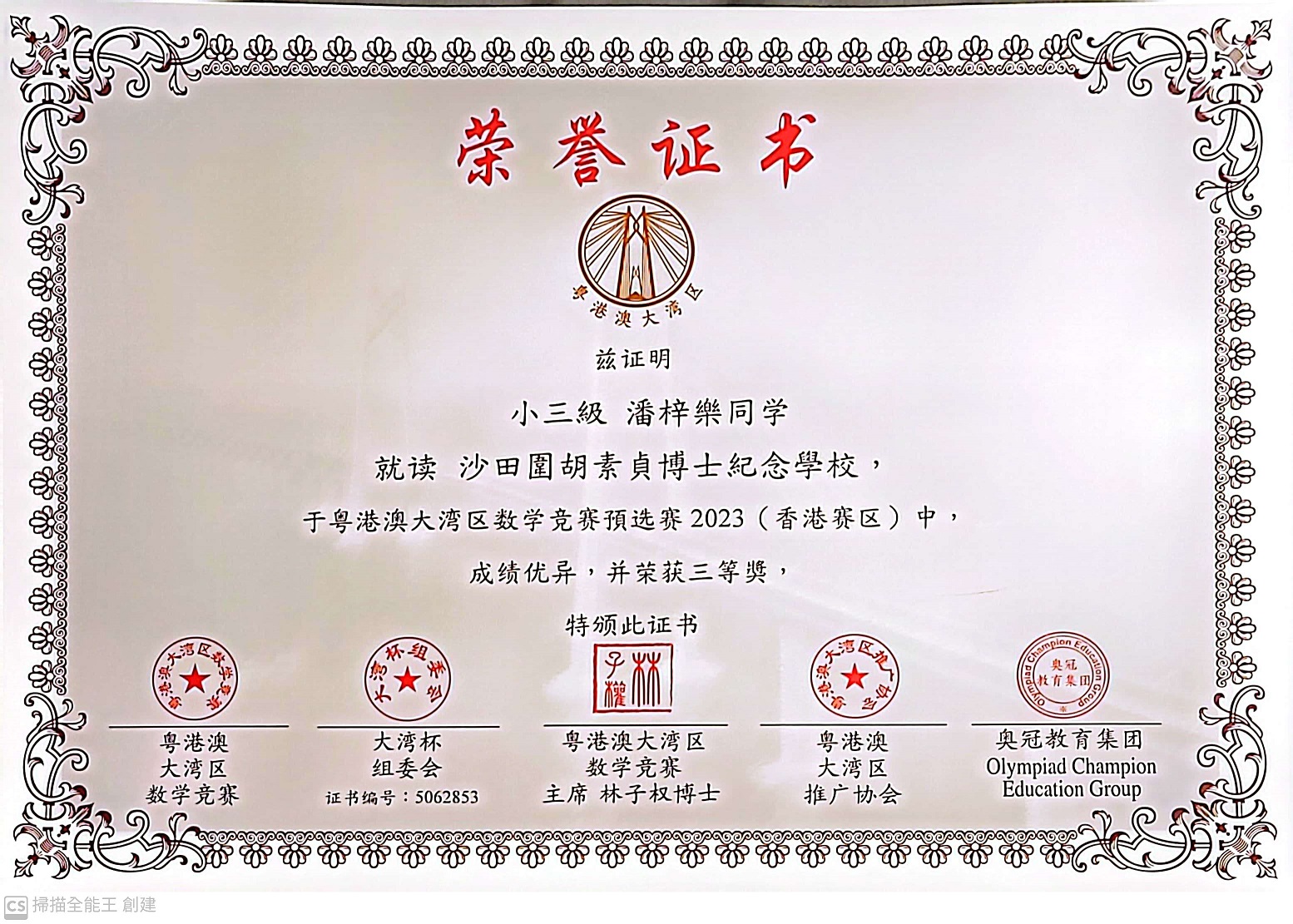 3A_潘梓樂_粵港澳大灣區數學競賽預選賽2023(香港賽區)_小三組_三等奬