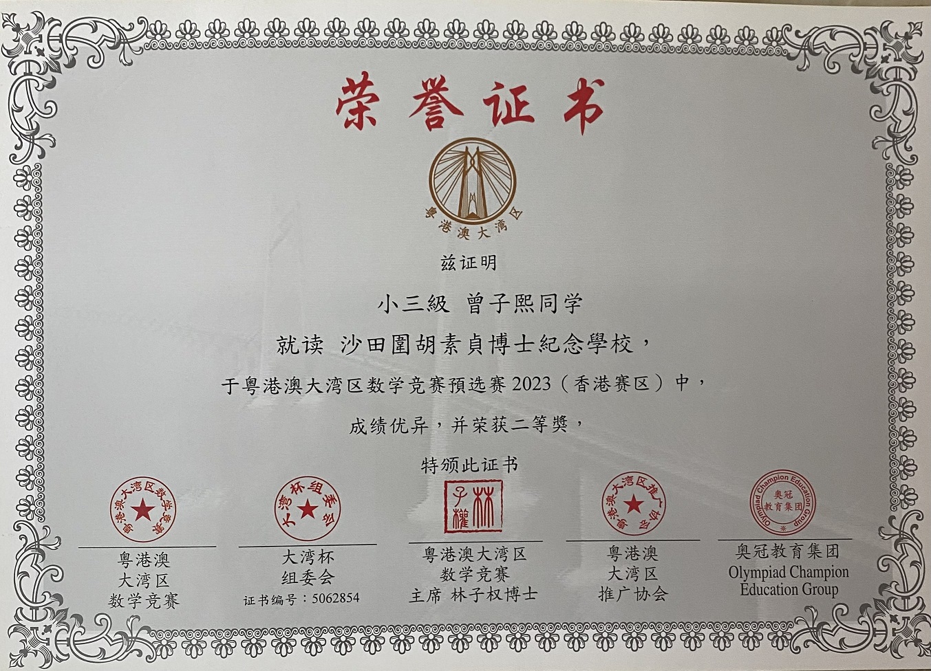 3A_曾子熙 _粵港澳大灣區數學競賽預選賽2023(香港賽區)_小三組_二等獎