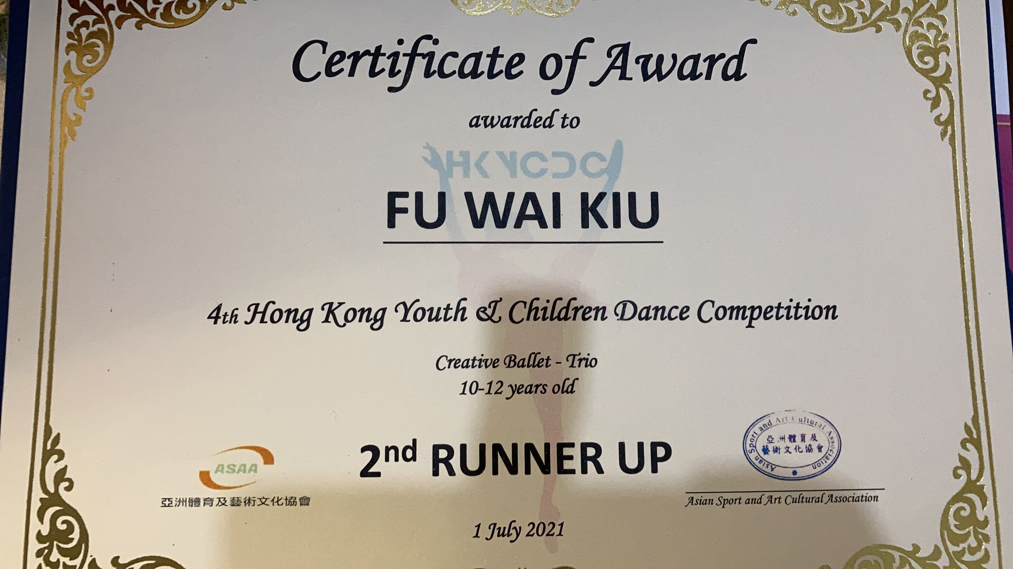 5B _傅煒喬_ 全港青少年及兒童舞蹈比賽_ 自創芭蕾舞三人_ 季軍