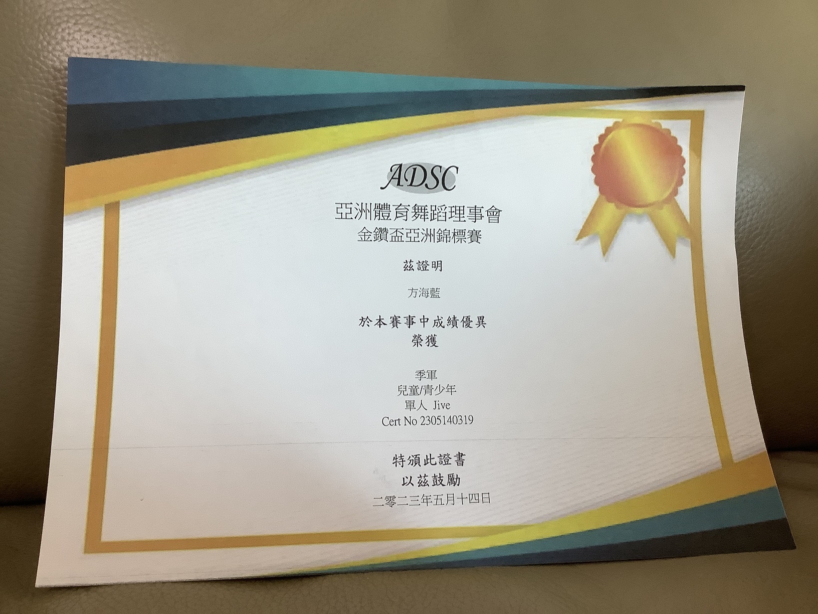 2A_方海藍_亞洲體育舞蹈理事會金鑽盃亞洲錦標賽_兒童/青少年單人Jive_季軍