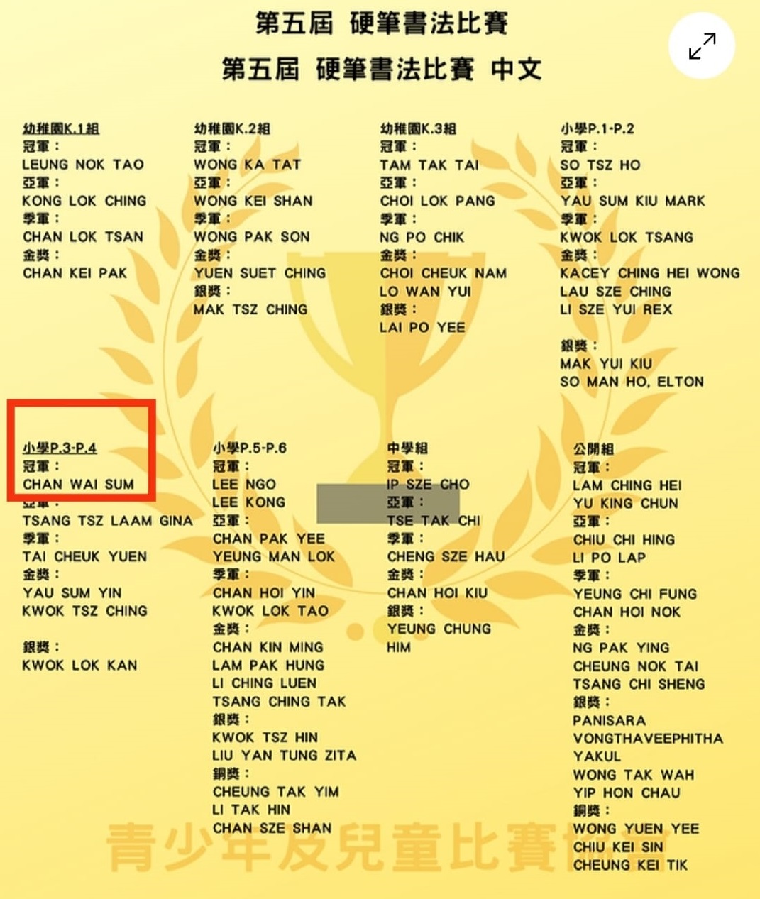 小三及小四組 | 冠軍 | ||