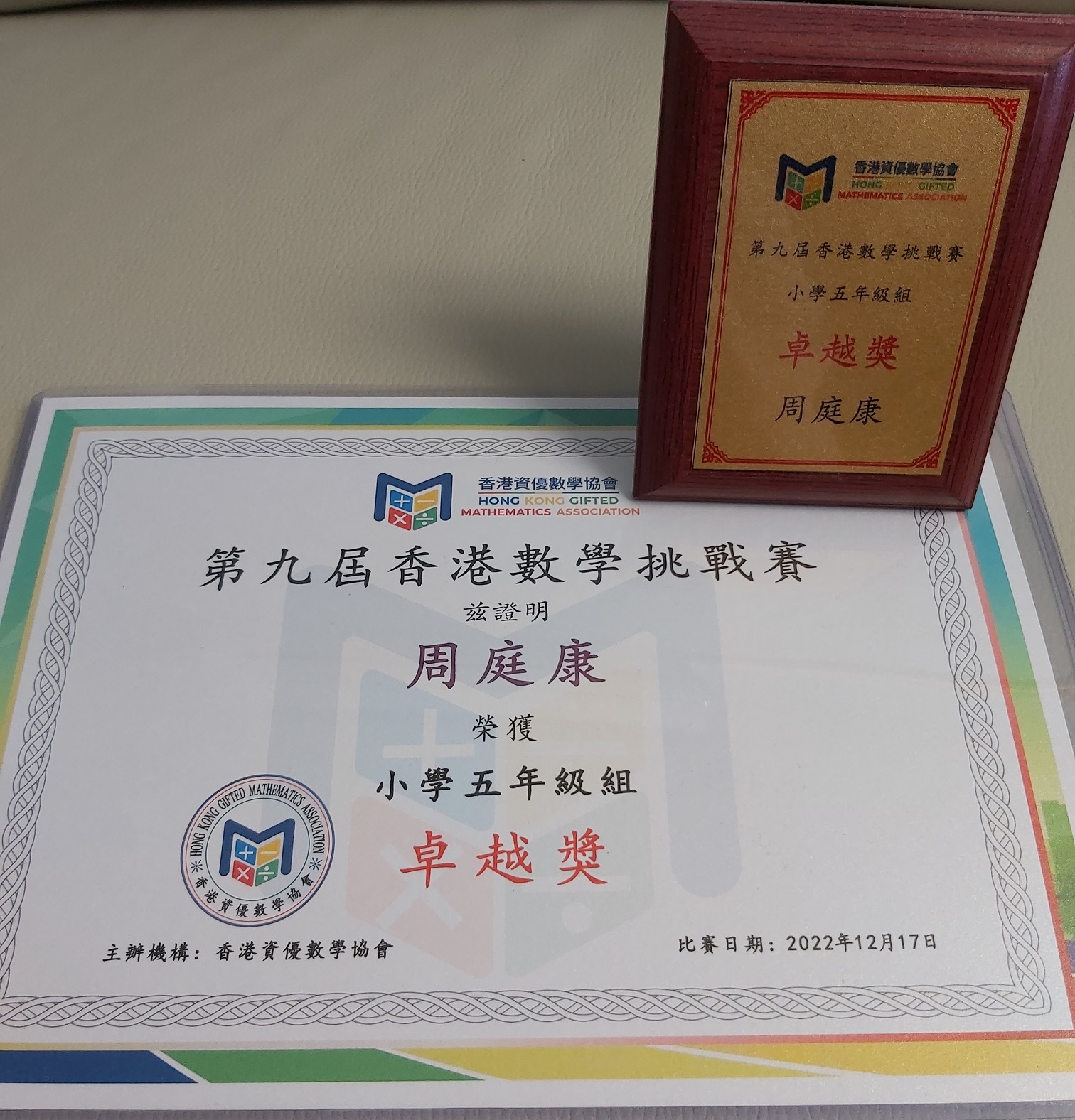 5A_周庭康_第九屆香港數學挑戰賽_五年級組_卓越獎