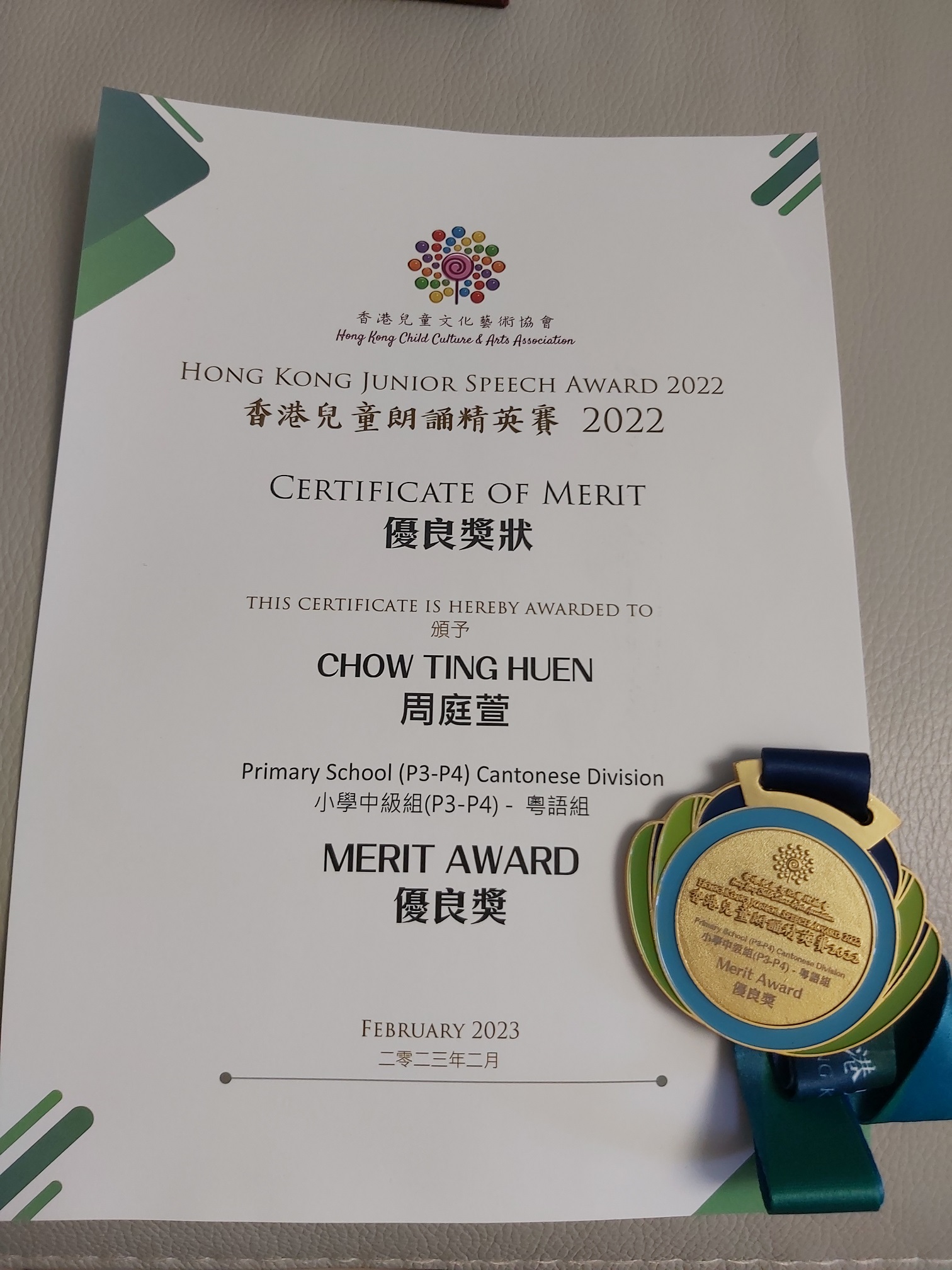 3B_周庭萱_香港兒童朗誦精英賽2022_小學中級組(P 3-P 4)-粵語組_優良獎