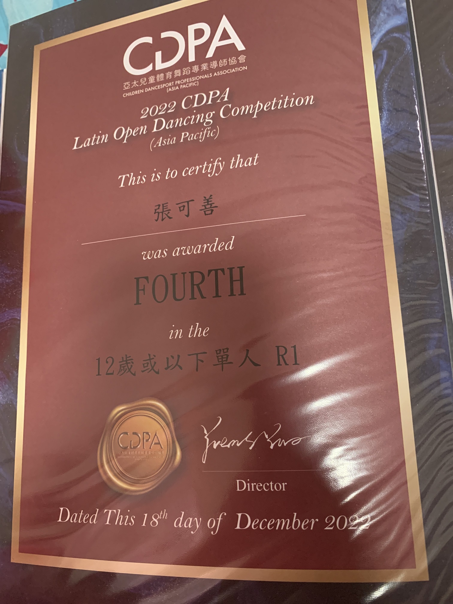 亞太兒童體育舞蹈專業導師協會 | 5C_張可善 |