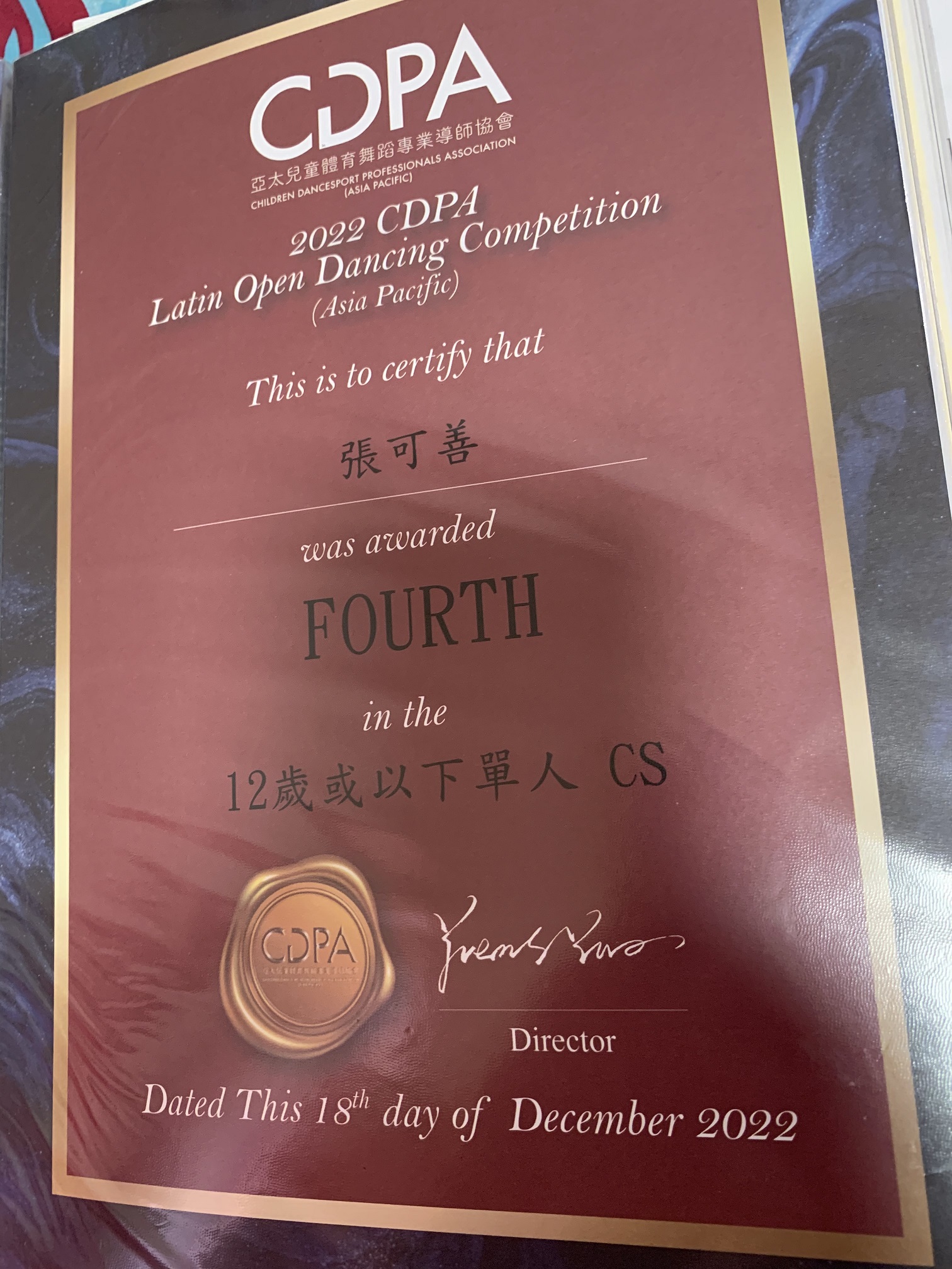 亞太兒童體育舞蹈專業導師協會 | 5C_張可善 |