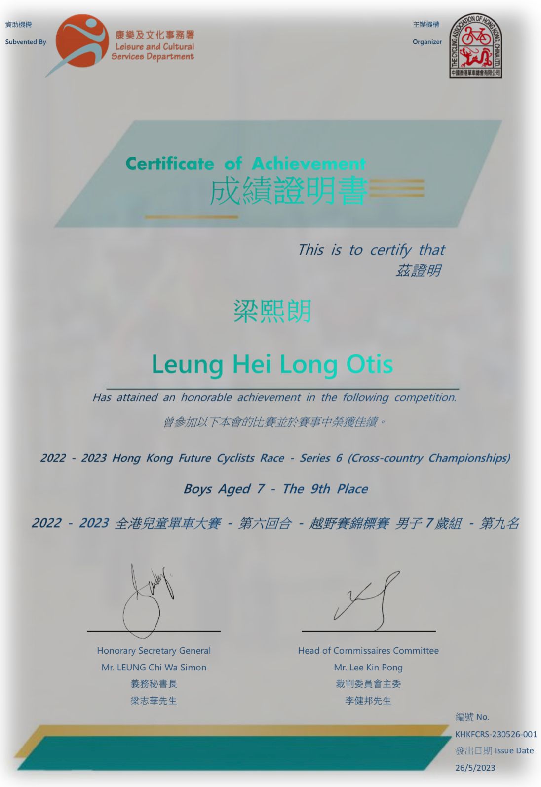 1C_梁熙朗_全港兒童單車大賽-第六回合-越野賽錦標賽_男子七歲組_第九名
