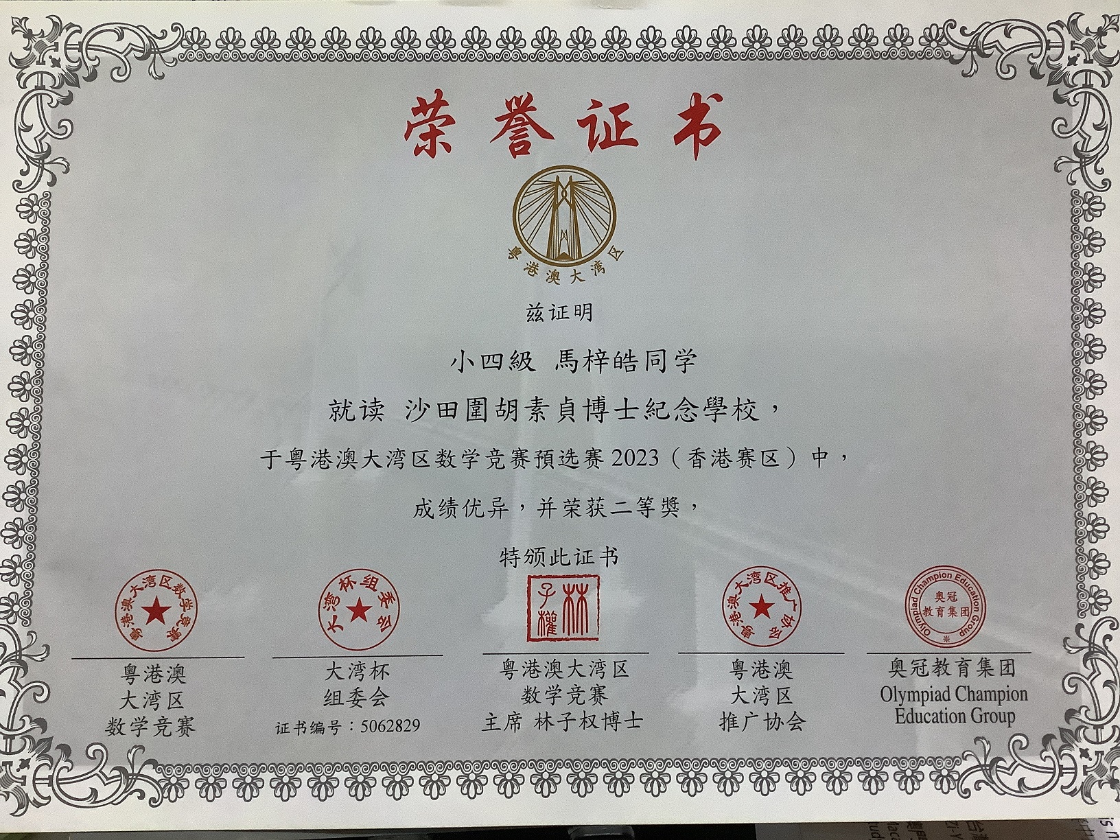 4A_馬梓皓_粵港澳大灣區數學競賽預選賽2023_小四級_二等獎