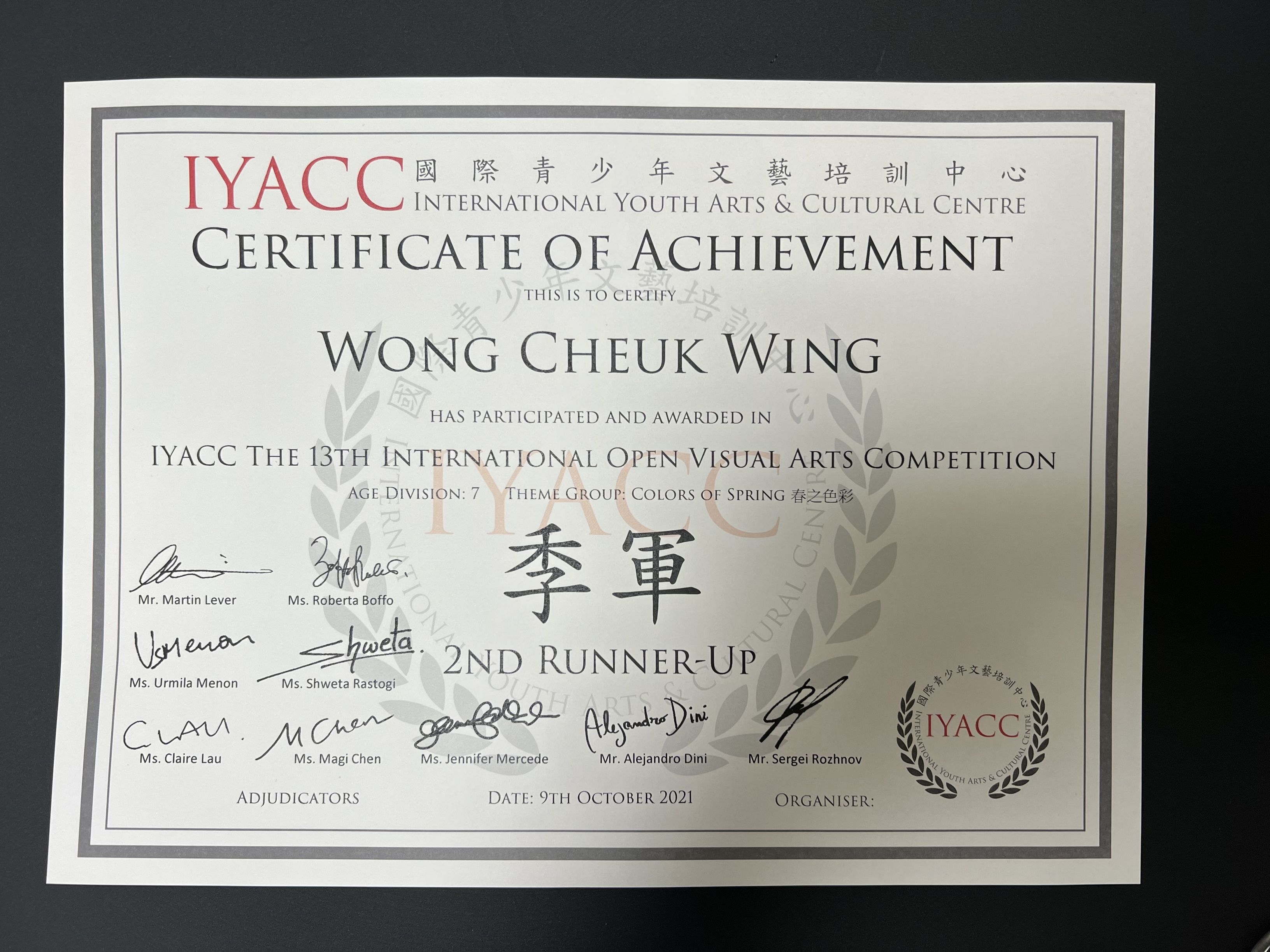 2A _黃綽詠_ IYACC第十三屆國際公開繪畫大賽_ 7歲組別_ 季軍