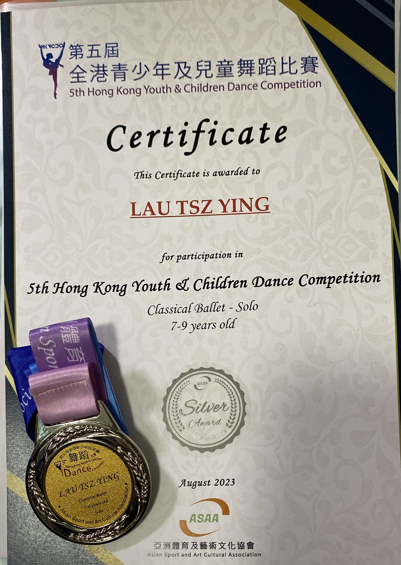4B_劉紫瑩_第五屆全港青少年及兒童舞蹈比賽_7-9歲古典芭蕾舞 - 獨舞_銀奬