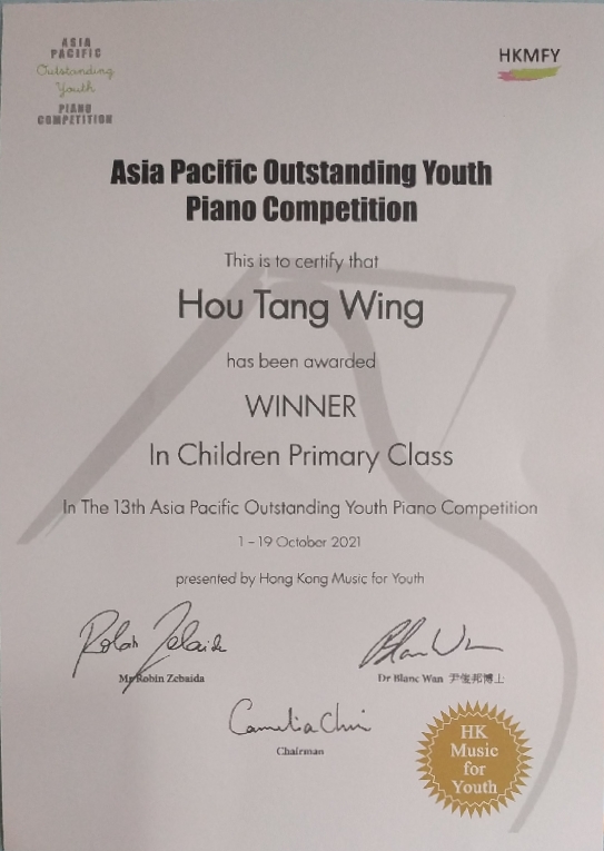 4B _侯騰泳_ 第十三屆亞太傑出青少年鋼琴比賽_ 兒童初級組_ 冠軍