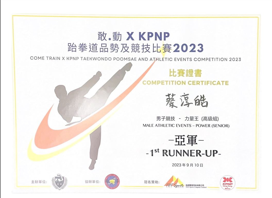 4A_蔡淳皓_敢‧動 X KPNP跆拳道品勢及競技比賽2023_男子競技-力量王(高級組)_亞軍
