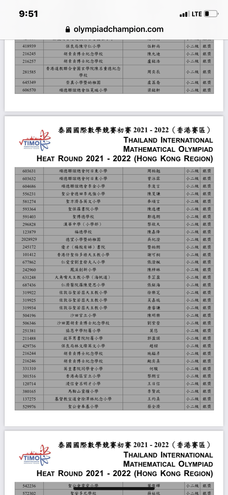 2B _劉紫瑩_ 泰國國際數學競賽初賽2021-2022_ 小二級_ 銀獎