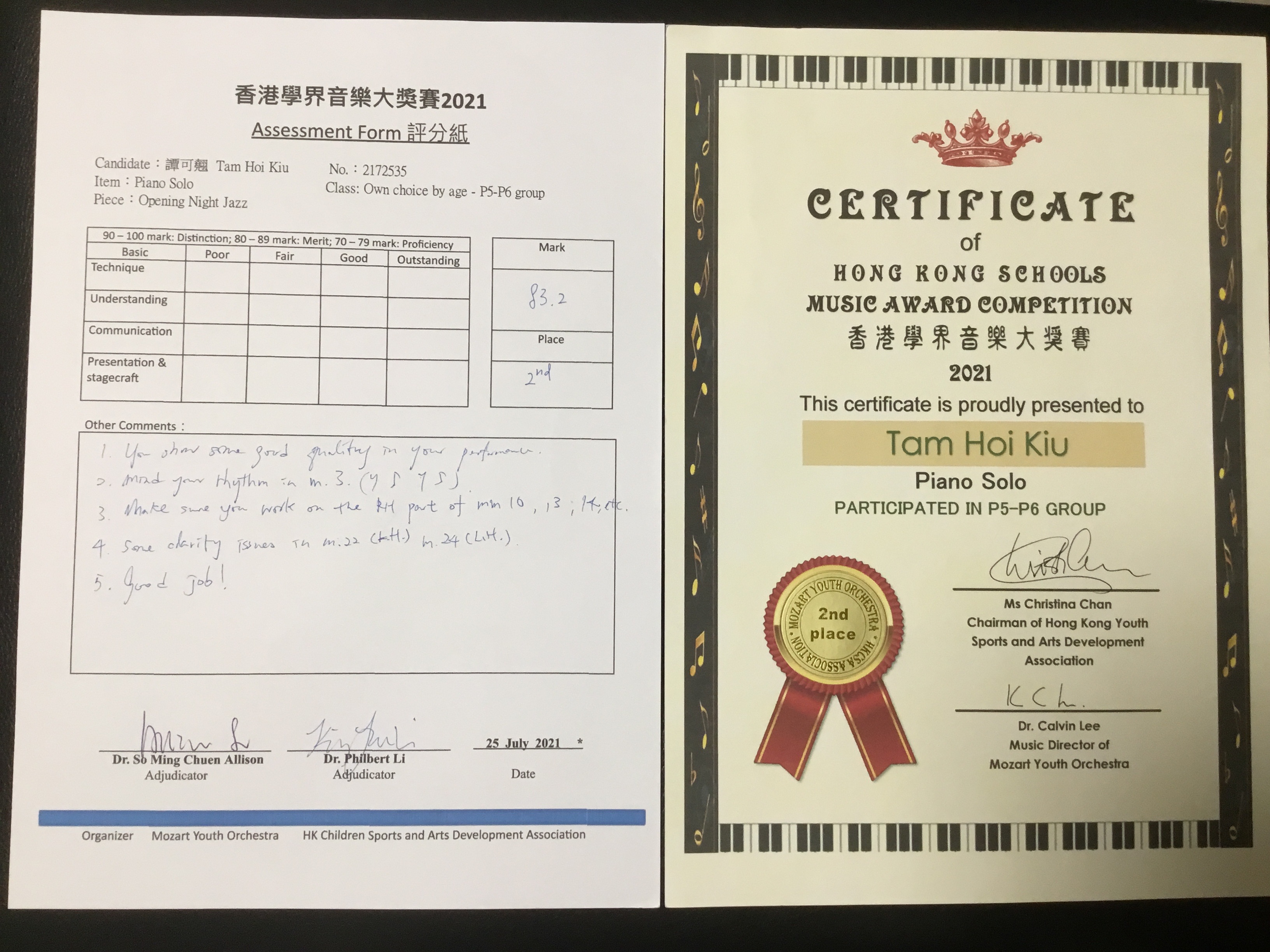 1)Mozart Youth Orchestra 2)HK Children Sports and Arts Development Association | 6D 譚可翹 |