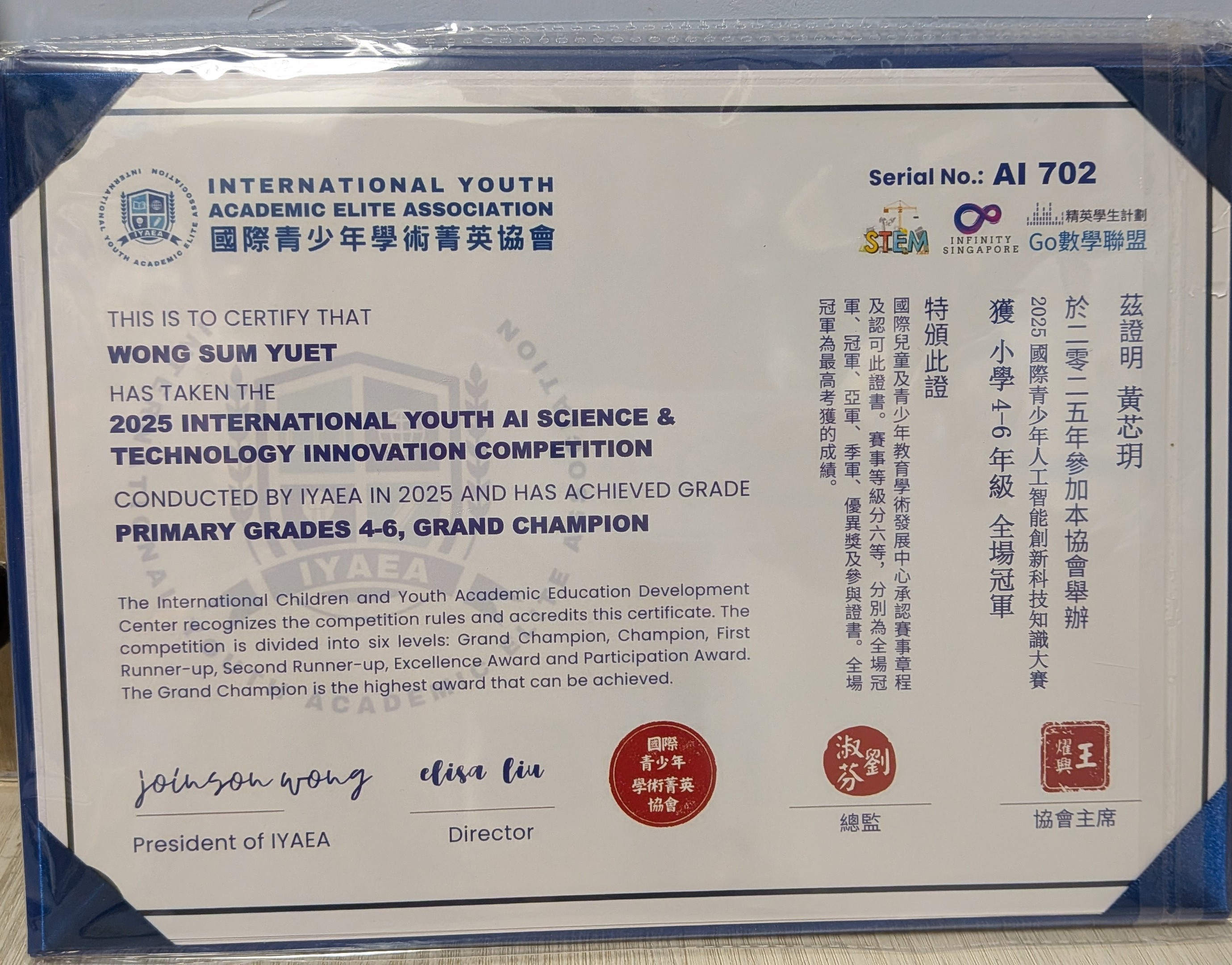 5A_黃芯玥_2025國際青少年人工智能創新科技知識大賽_小學4-6年級組_全場冠軍