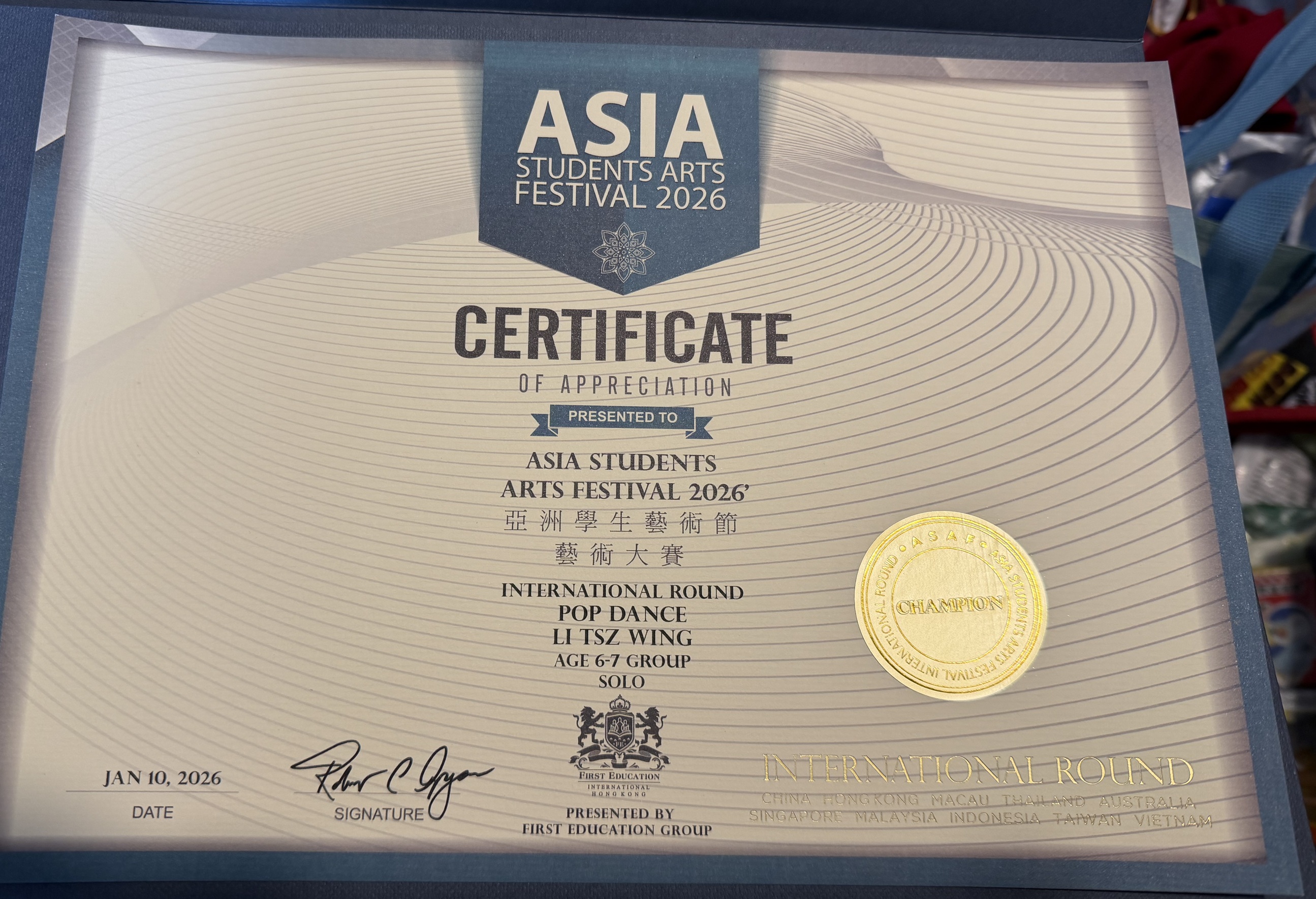 1B_李梓嶸_亞洲學生藝術節藝術大賽2026_流行舞-個人舞_冠軍