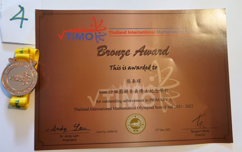 3B_張秦瑋_泰國國際數學競賽晉級賽_小三級_銅奬