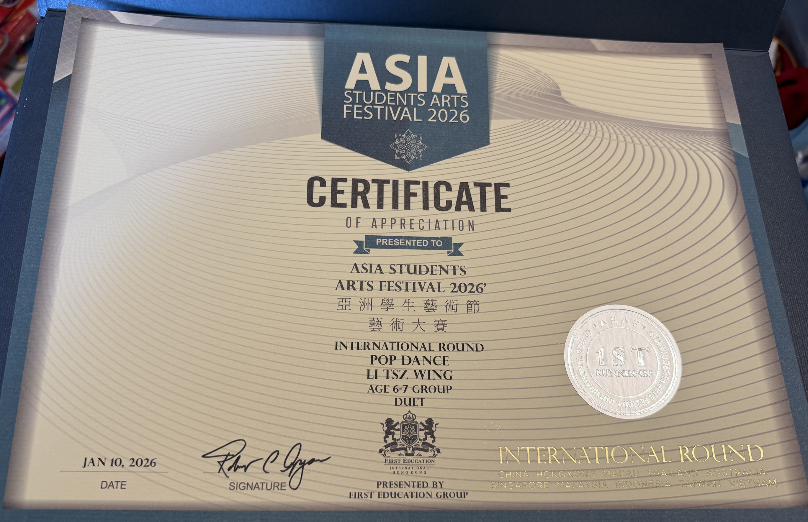 1B_李梓嶸_亞洲學生藝術節藝術大賽2026_流行舞 -雙人舞_亞軍