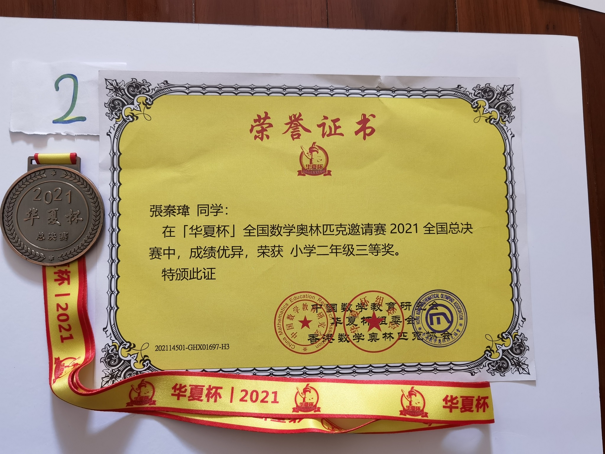 3B_張秦瑋_華夏杯全國數學奧林匹克邀請賽2021全國總決賽_小學二年級_三等獎