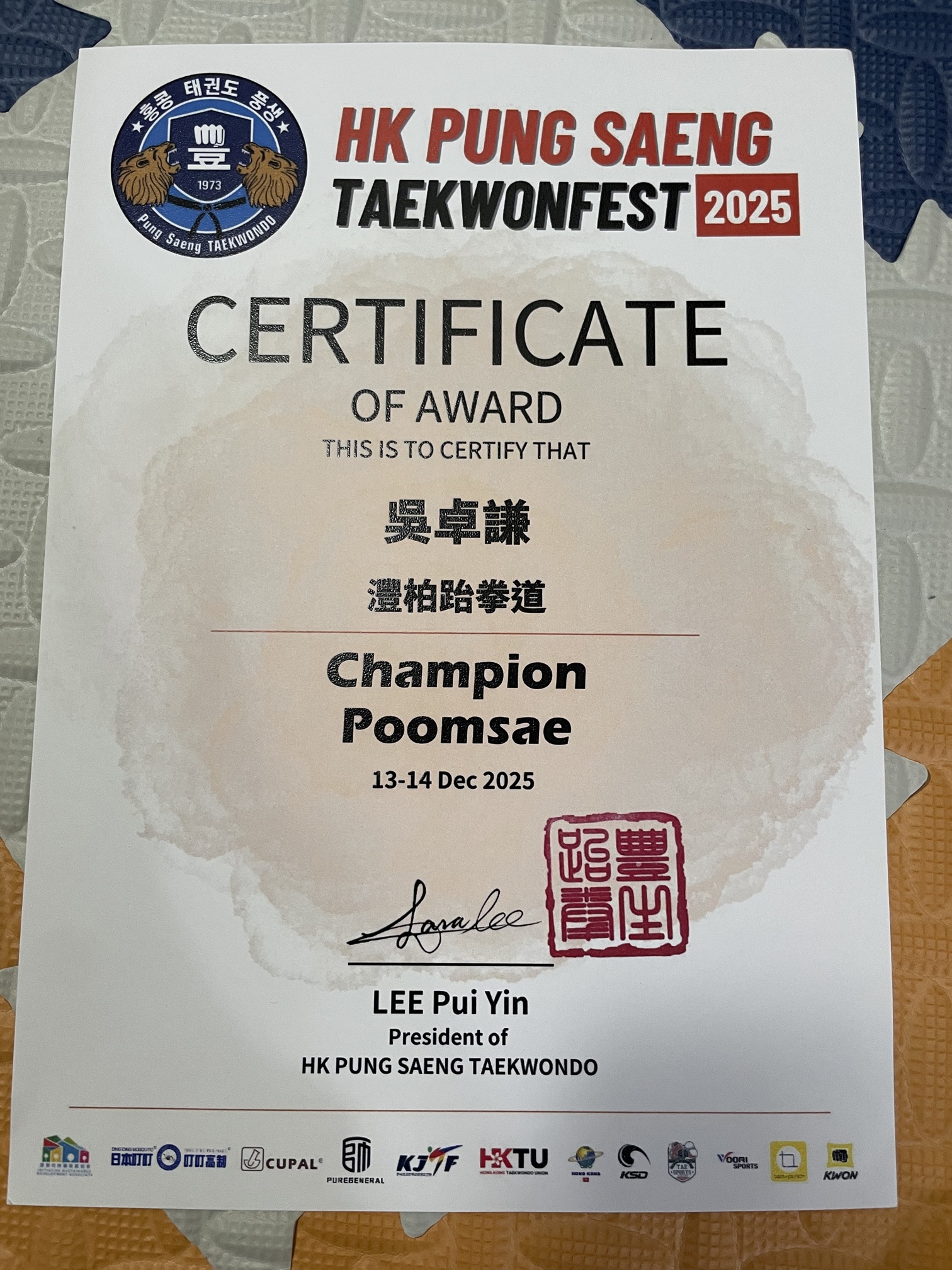 1C_吳卓謙_香港豐生跆拳道國際交流賽2025_品勢 - 第八章_冠軍