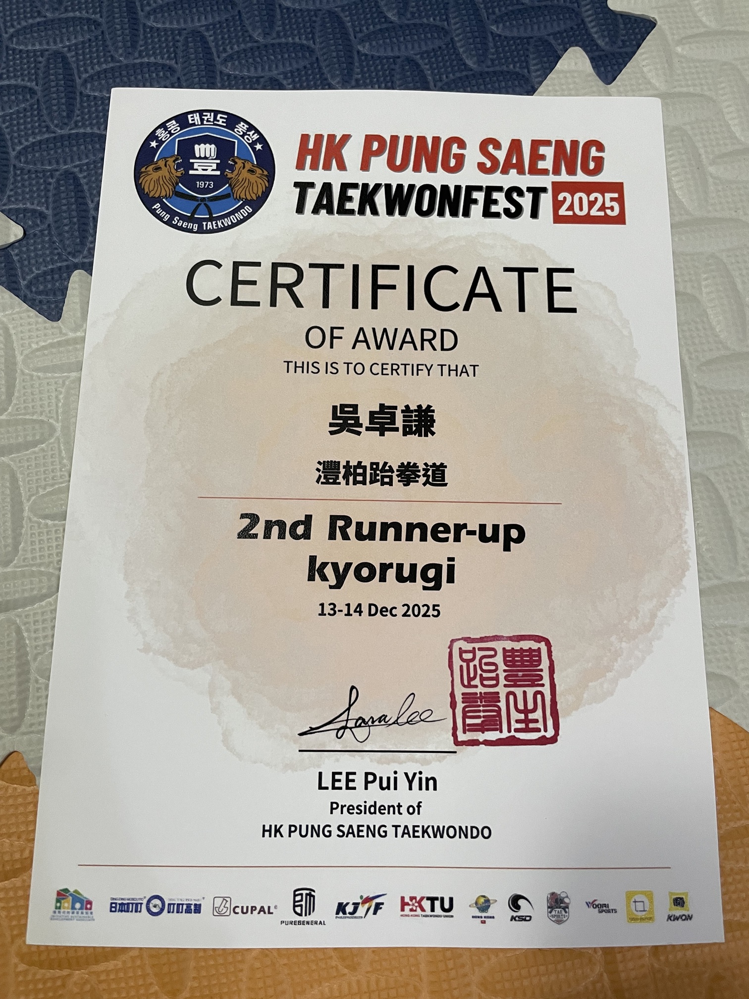 1C_吳卓謙_香港豐生跆拳道國際交流賽2025_搏擊 - 22kg_季軍