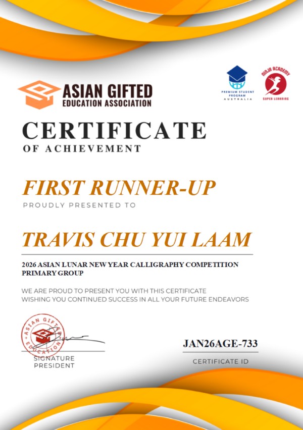 1C_朱睿嵐_2026賀年揮春書法⼤賽_小學組_亞軍